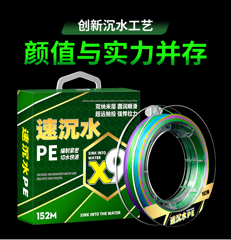 进口超顺滑沉水大力马鱼线主线新款pe线过胶远投路亚大马力9编1.0