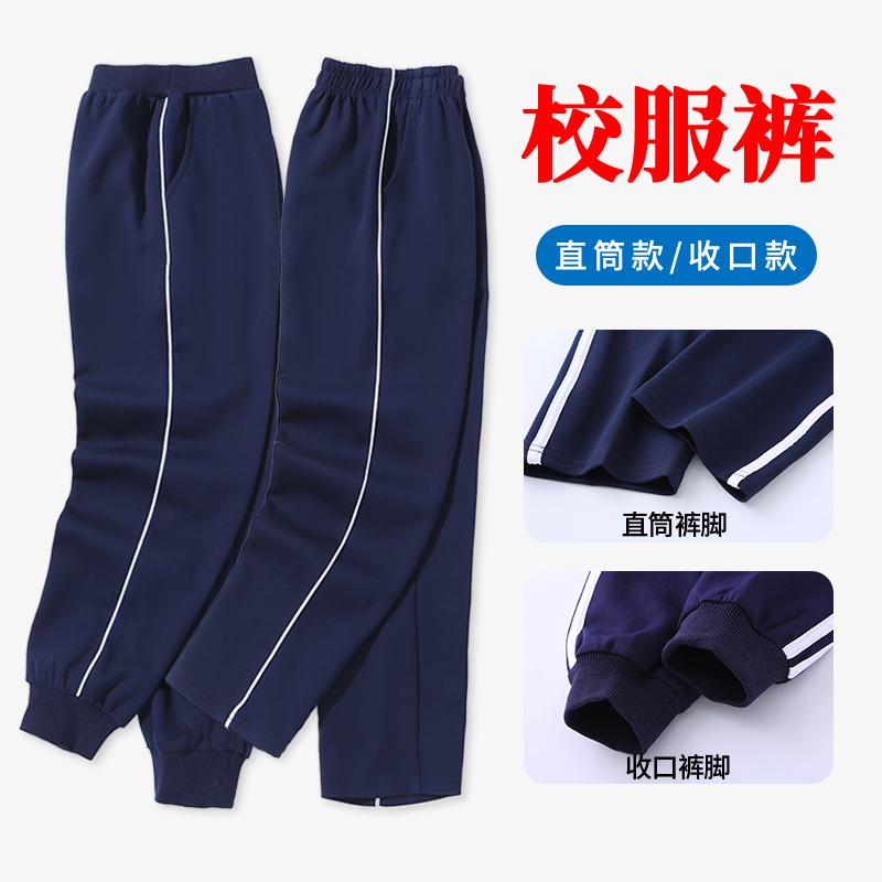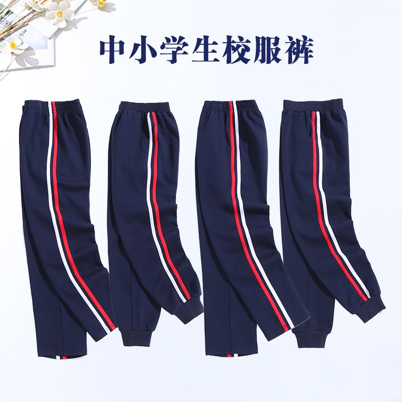 儿童两条杠运动裤女童藏青色小学生校服裤子男童深蓝中大童一道杠