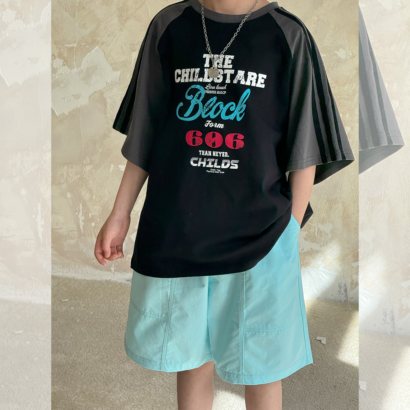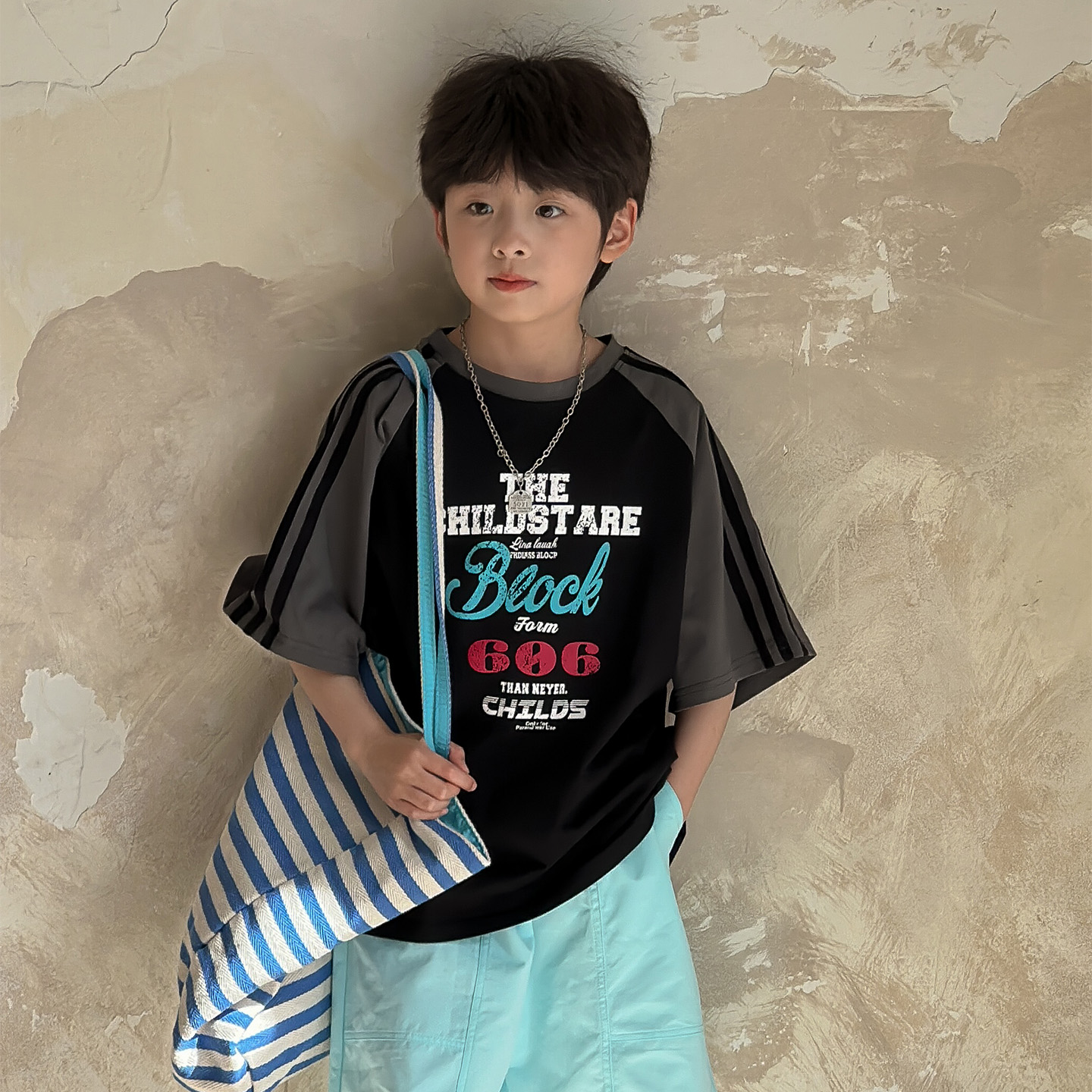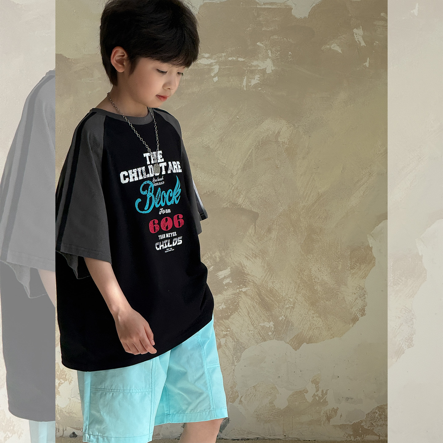 虾酱麻麻男童纯棉裤子夏季薄款2025新款男孩洋气阔腿拼接儿童短裤