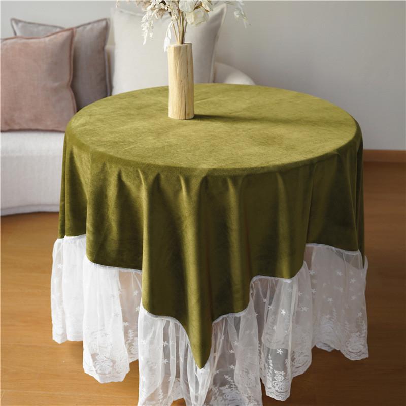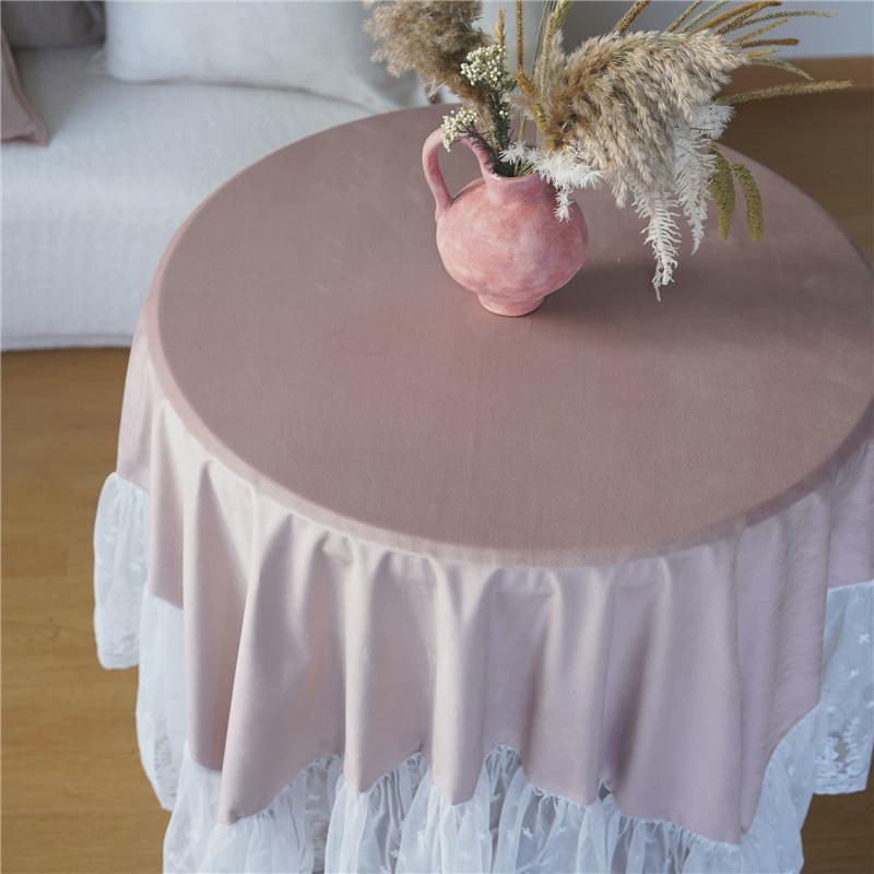 欧式蕾丝边小茶几圆桌桌布脏粉色茶几棉麻盖布轻奢高级感餐桌台布