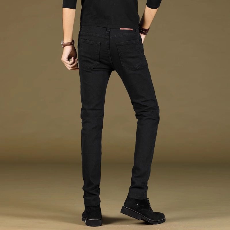 春秋季黑色牛仔裤男修身小脚裤弹力显瘦紧身韩版潮瘦腿休闲长裤子