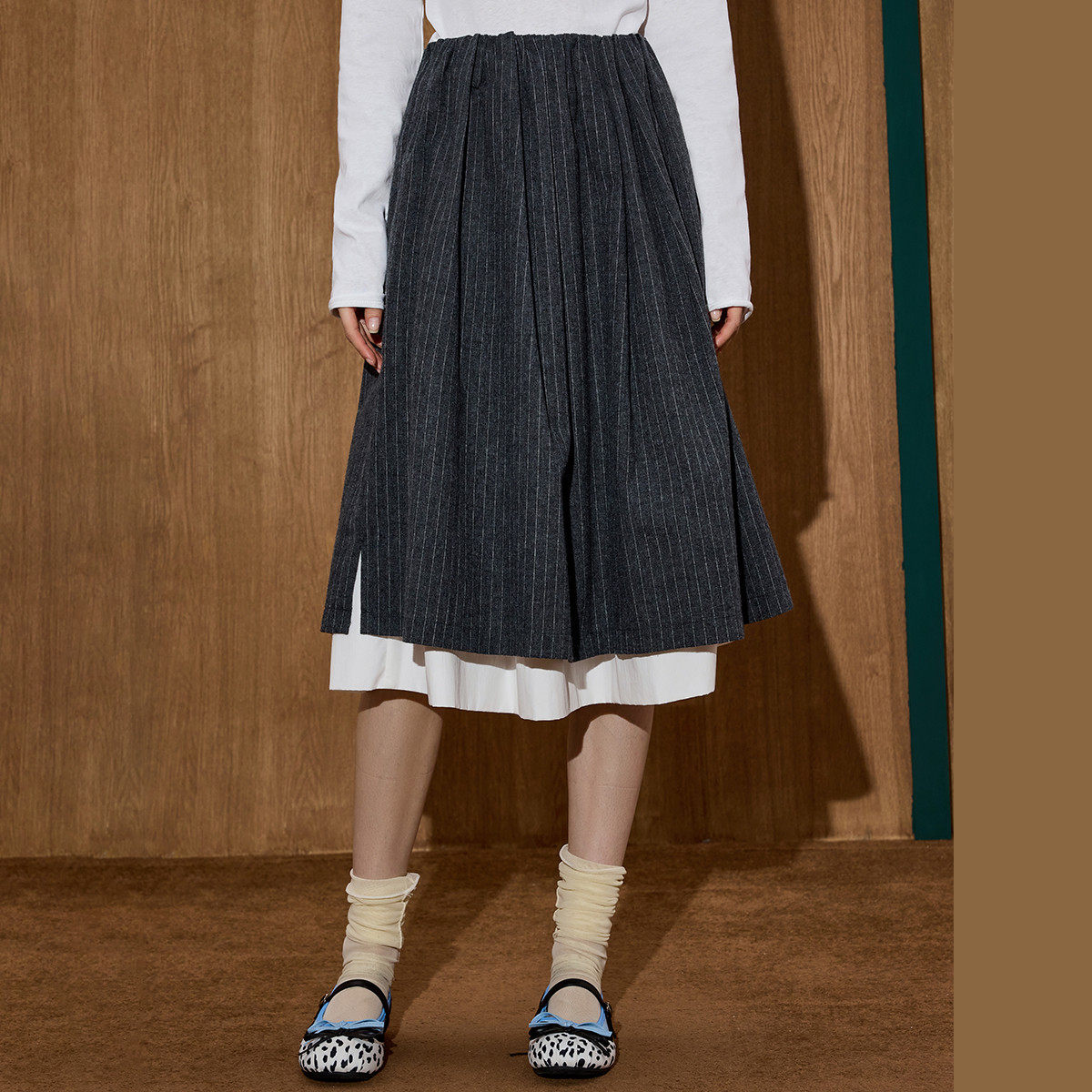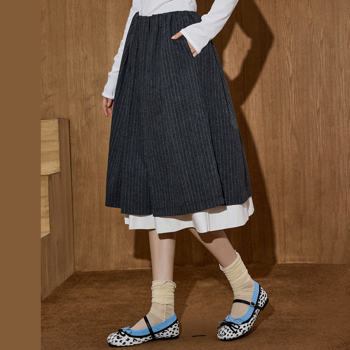 条纹双层拼接显瘦A字裙