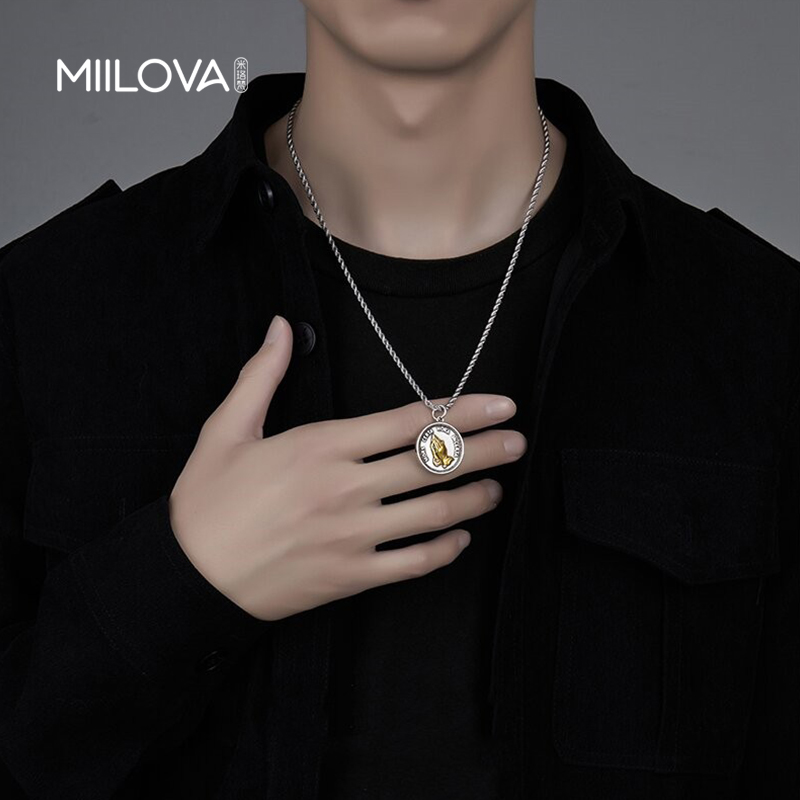 祈祷之手项链复古男潮个性嘻哈风欧美街头女潮牌吊坠ins简约百搭