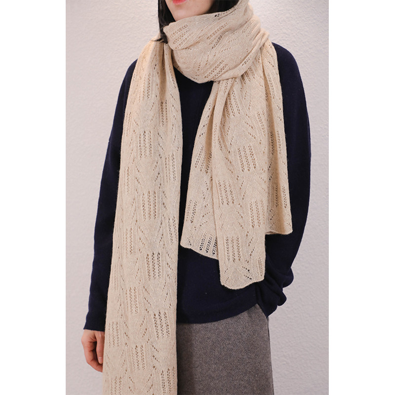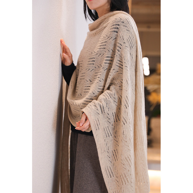 无染色镂空钩花羊绒针织围巾披肩