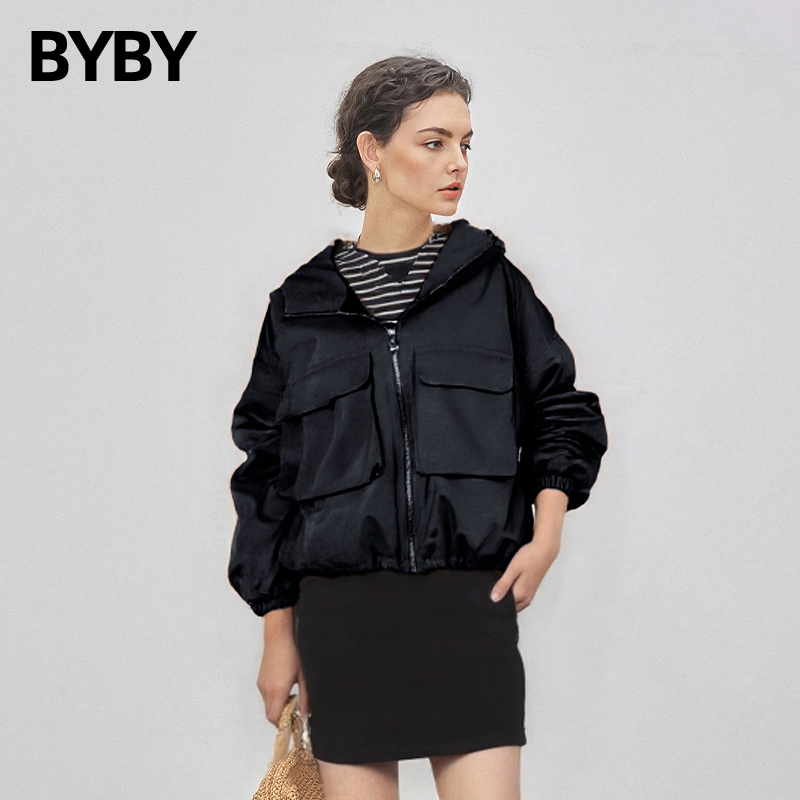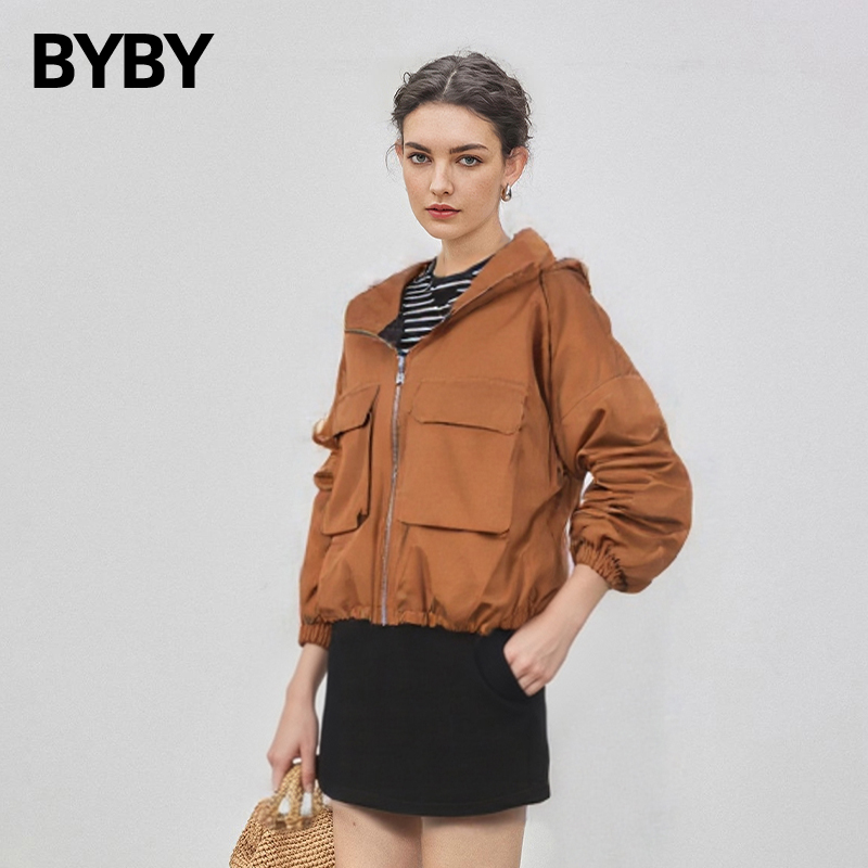 布衣布语工装夹克连帽薄款羽绒服