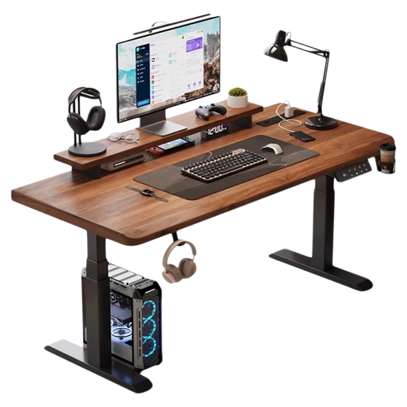 安居客实木电脑桌家用电动升降桌学习书桌办公桌电竞可升降工作台