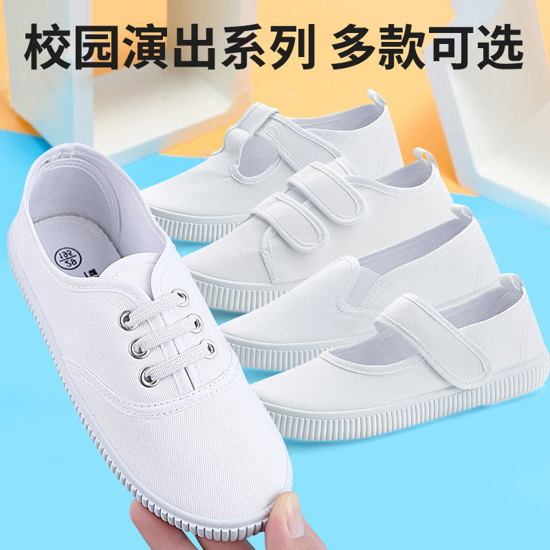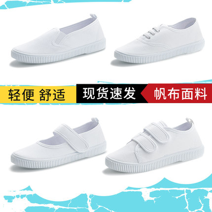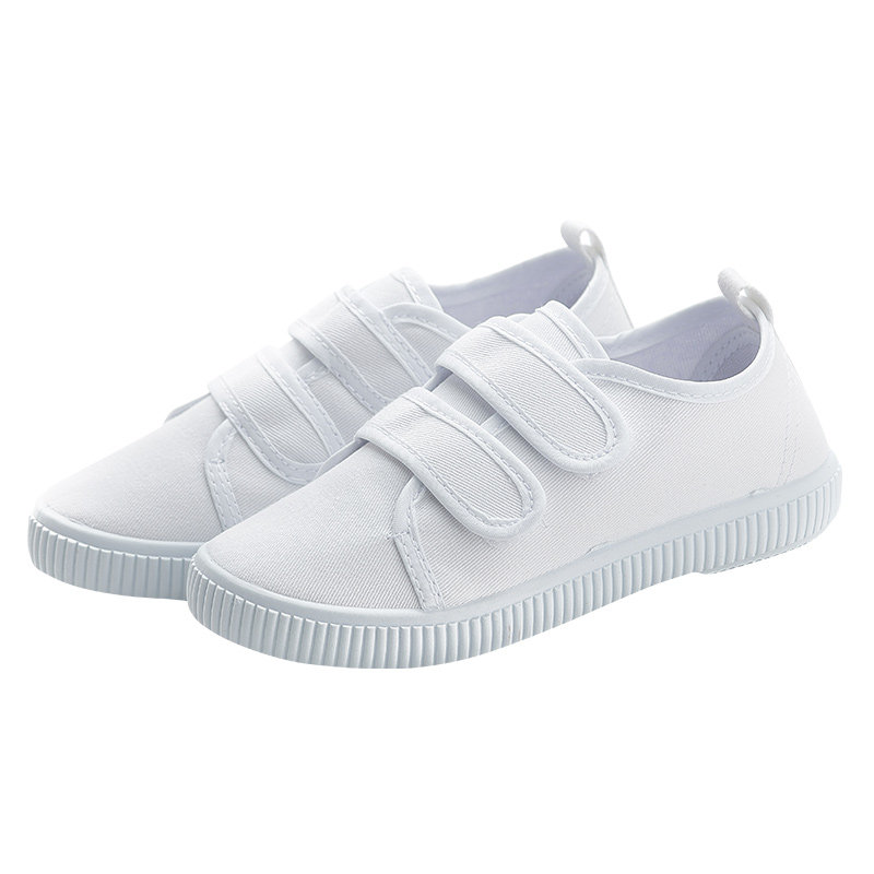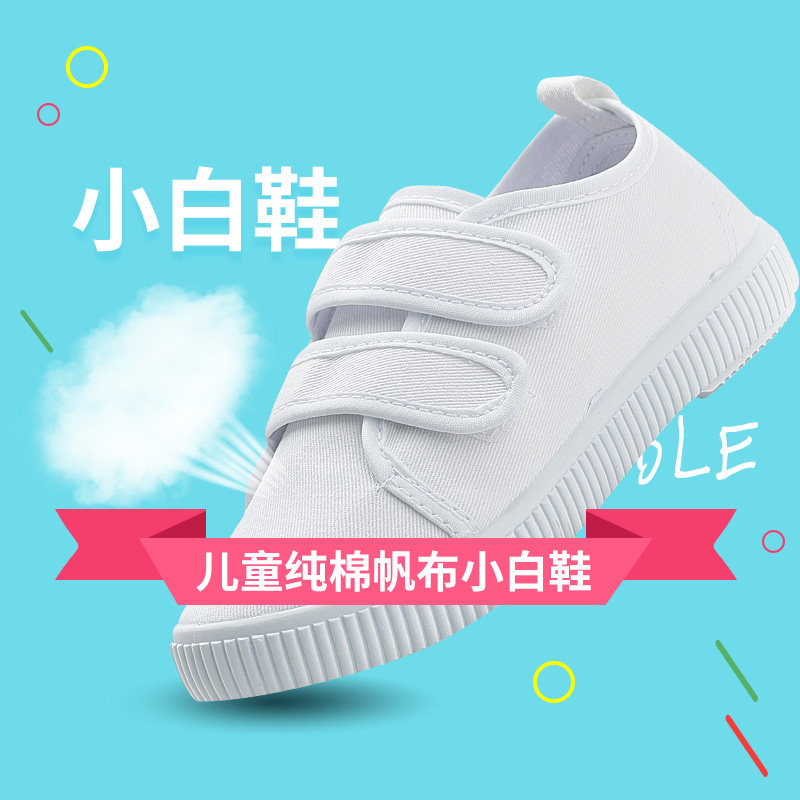 一字儿童小白鞋子女春秋幼儿园学生室内学步鞋男童白色板鞋帆布鞋