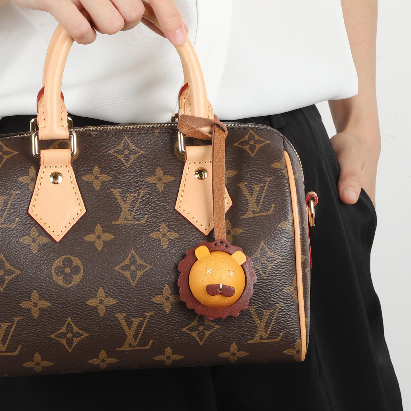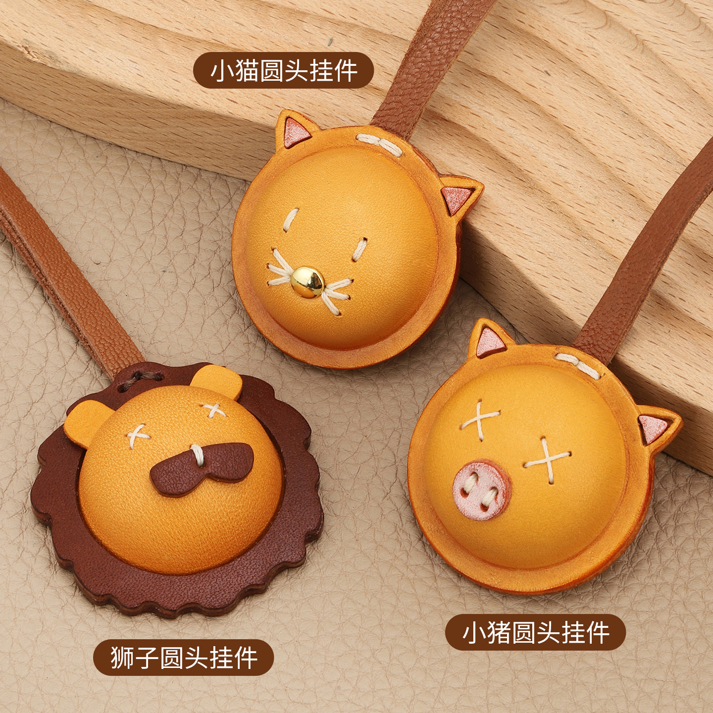 怡萨包包挂件狮子头小猪挂件头层牛皮手工复古真皮撞色可爱装饰