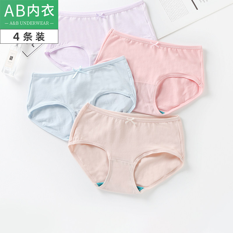 4条ab女士纯棉内裤弹力棉质抗菌中腰纯色性感少女小平角短裤Y138
