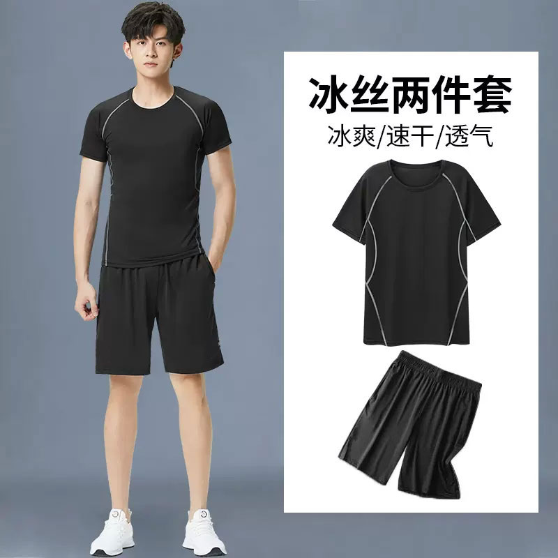 冰丝运动跑步短裤男大码健身速干休闲五分夏季训练薄款篮球裤套装