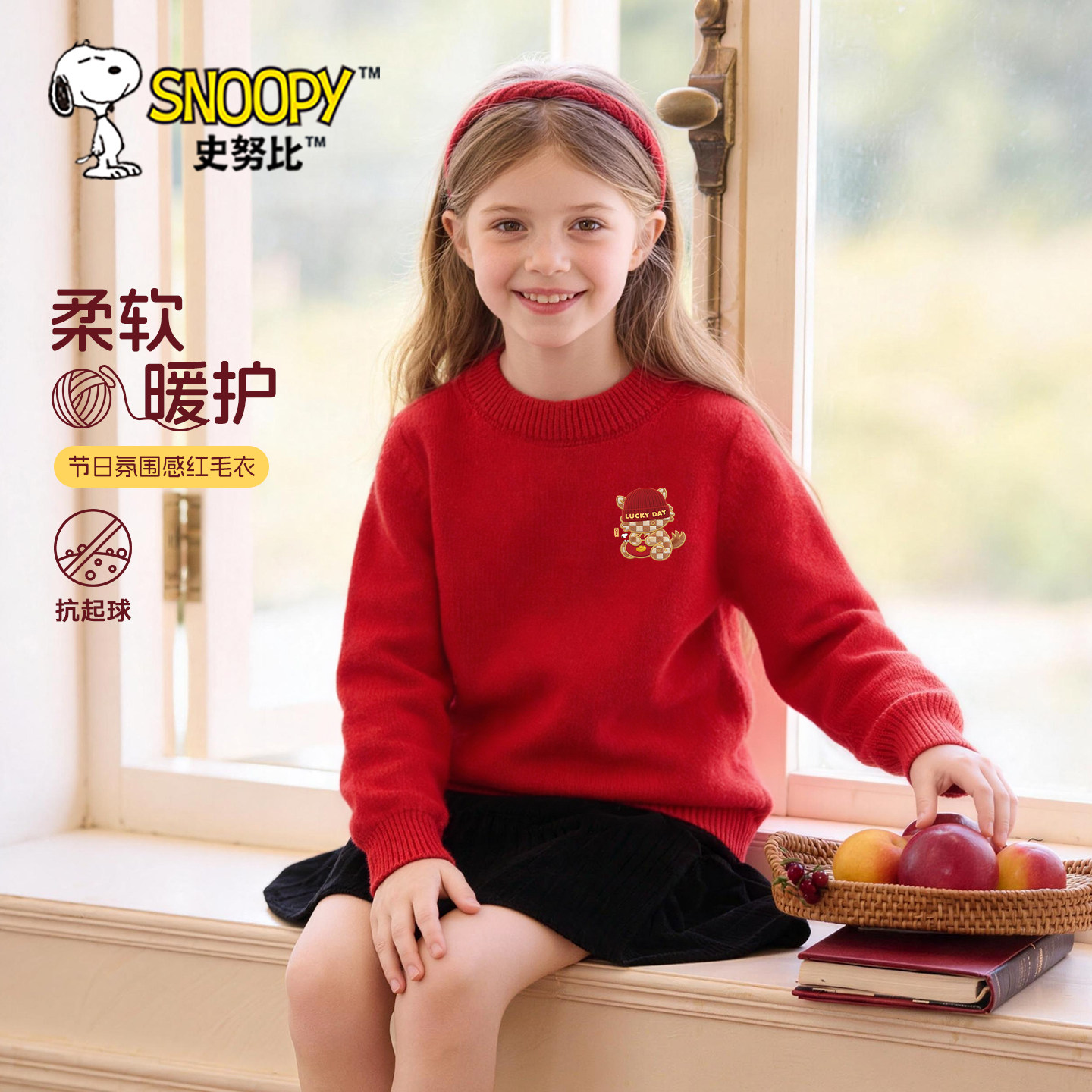 史努比女童加绒毛衣红色拜年服冬