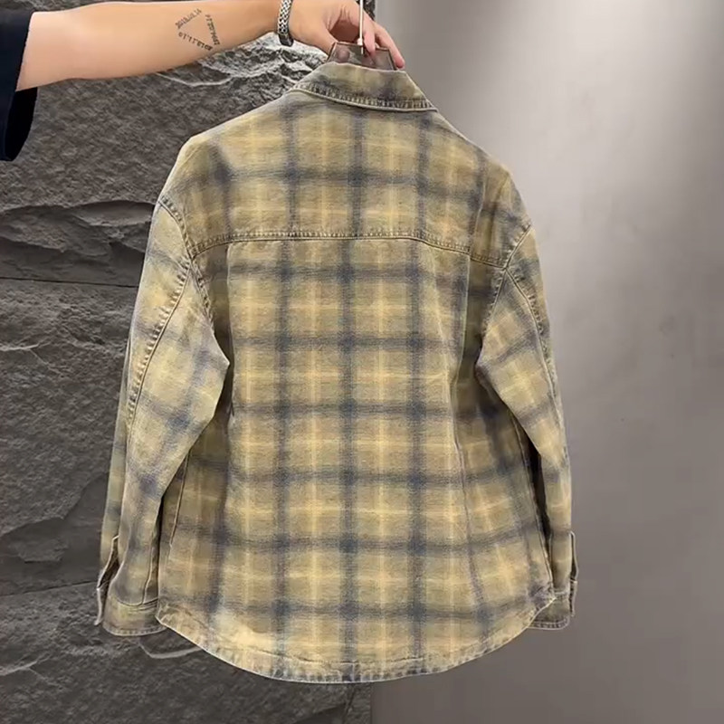 春秋款格子牛仔外套男款潮牌高级感2026新款宽松重磅夹克男美式潮