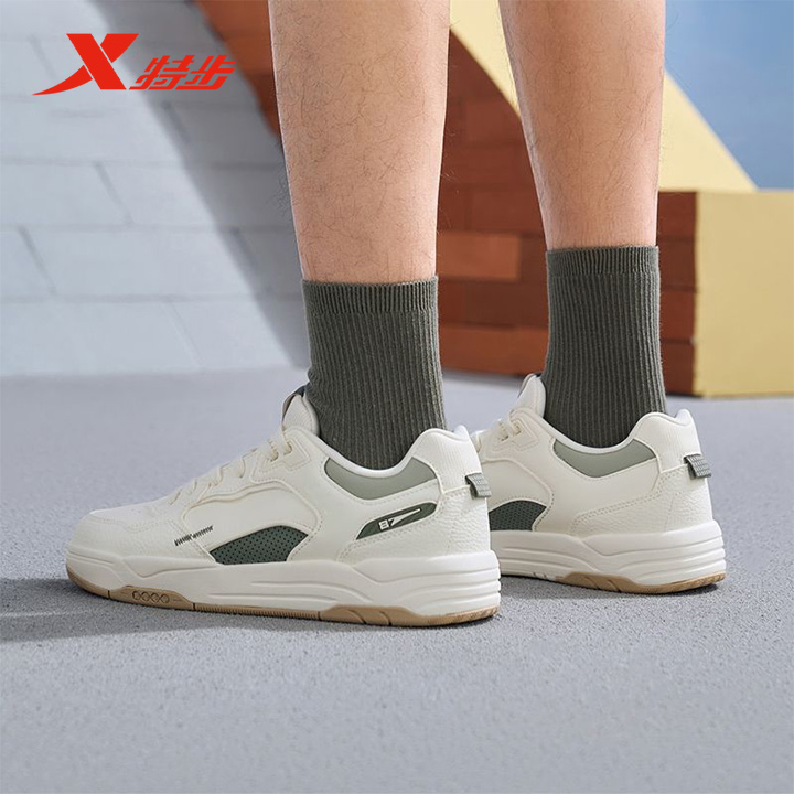 特步启浪lite男鞋运动板鞋2025春夏低帮皮面休闲鞋975119310009
