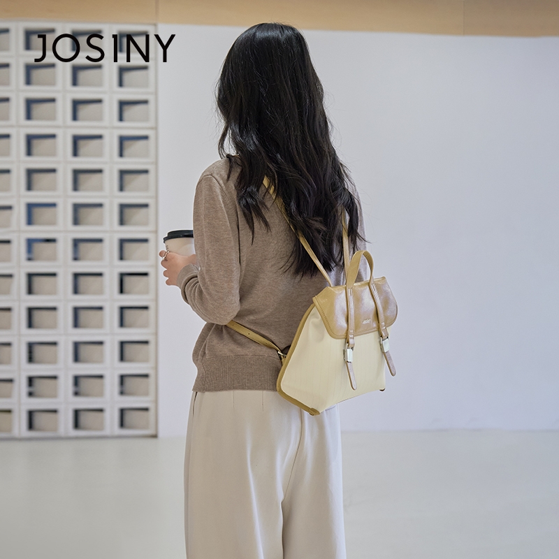 卓诗尼2025新款双肩包女简约百搭复古背包休闲女包大容量旅行包x