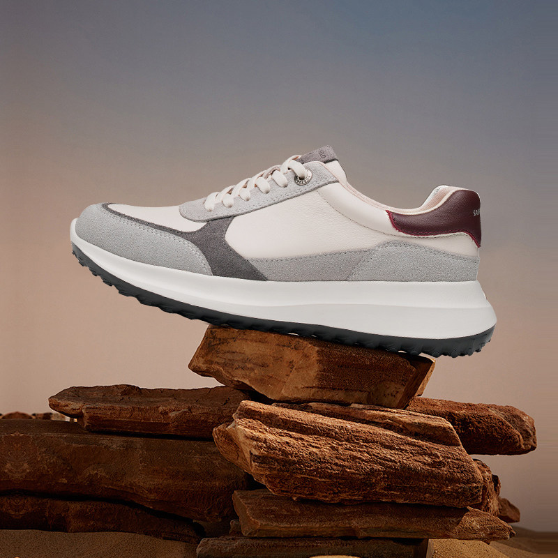 低帮小牛皮织物发泡底男鞋报喜鸟