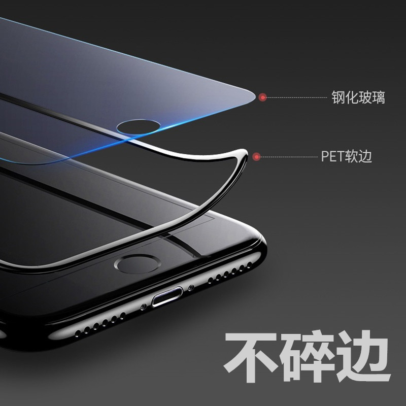 苹果7plus不碎边全屏覆盖钢化膜6/7/8/6splus/7p/8p黑边大视窗高清护眼抗蓝光软边不进灰送镜头膜
