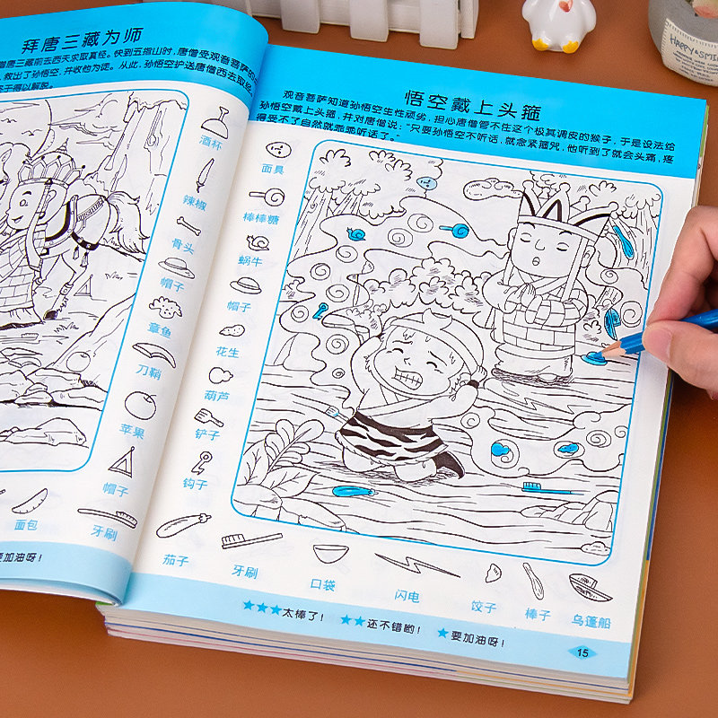 【加厚大开本】趣味图画捉迷藏 四大名著全套16本恐龙 美少女找东西图画书高难度幼儿童6-8-12岁找不同专注力训练小学生隐藏的图画