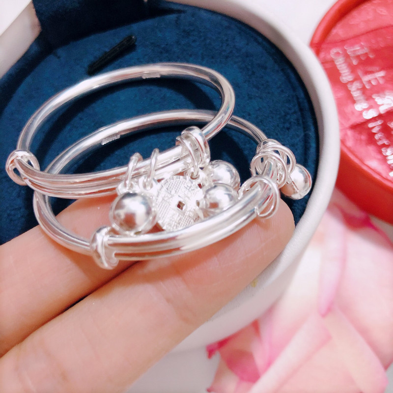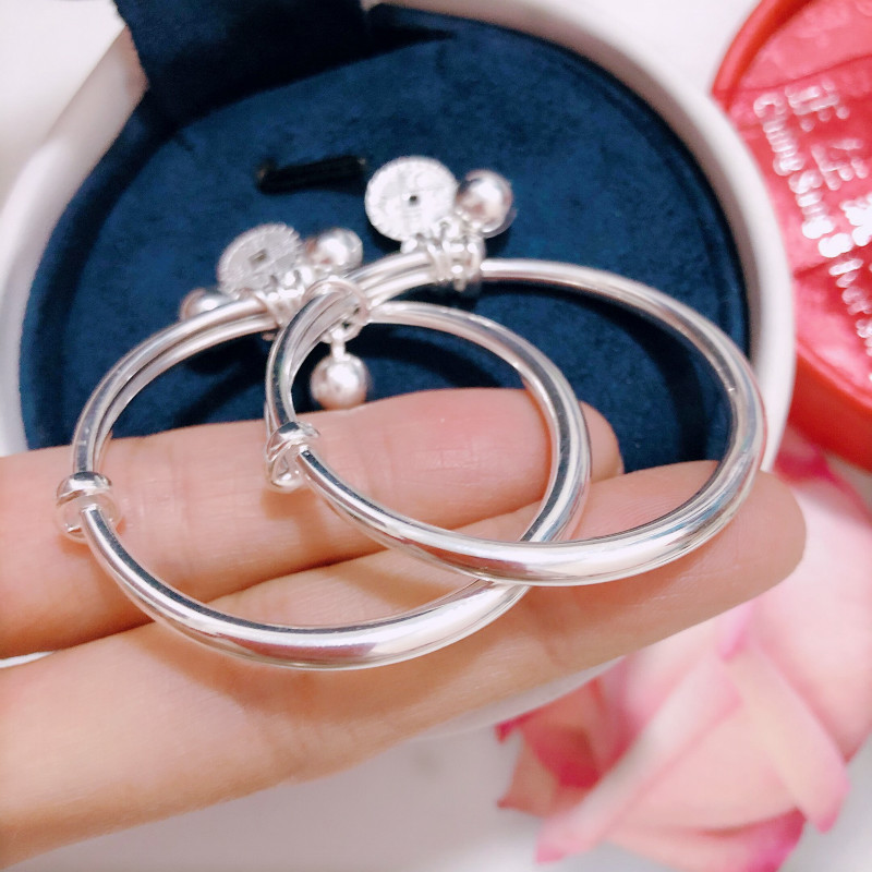 香港正生铃铛铜钱男女宝宝足银手镯健康快乐出入平安送婴儿首饰