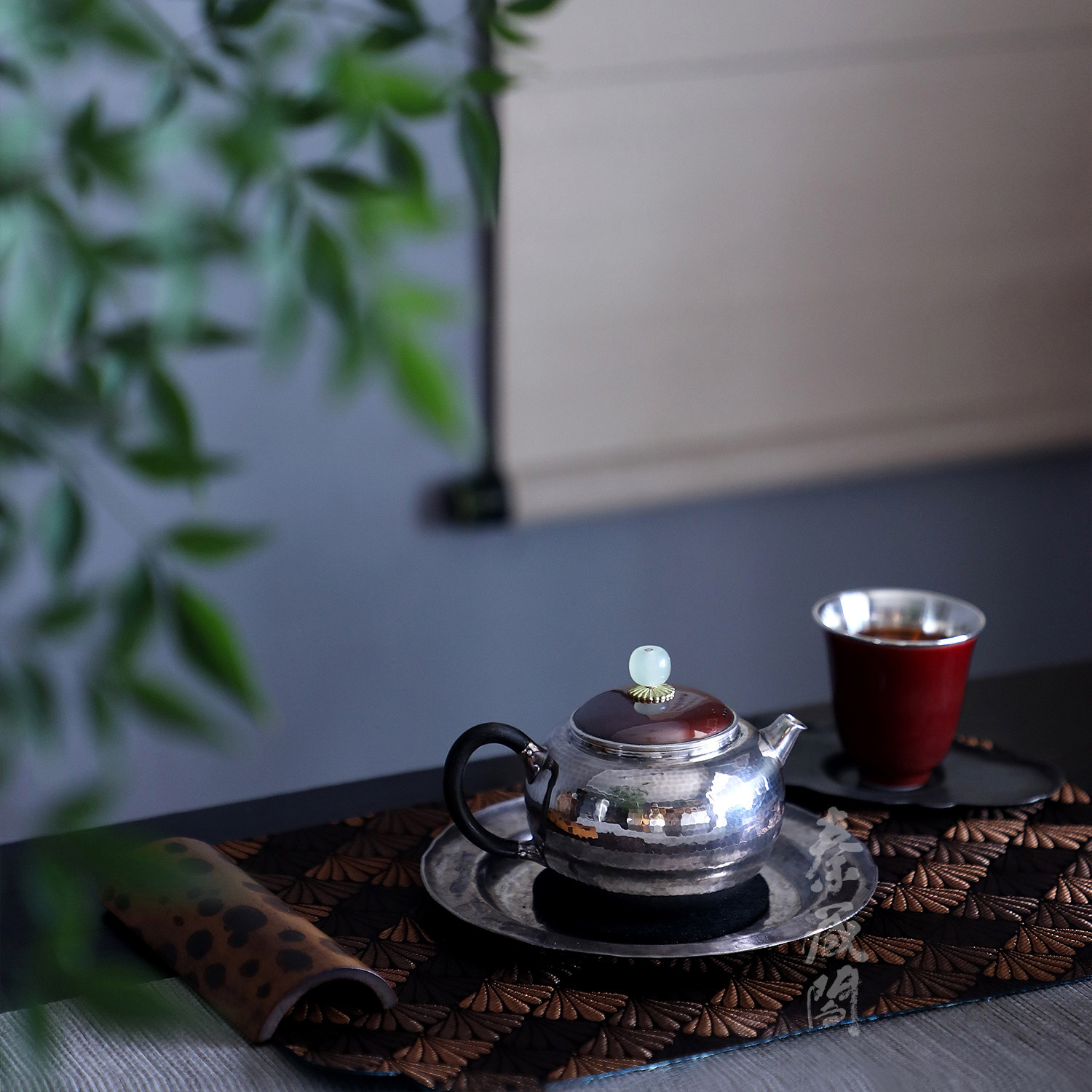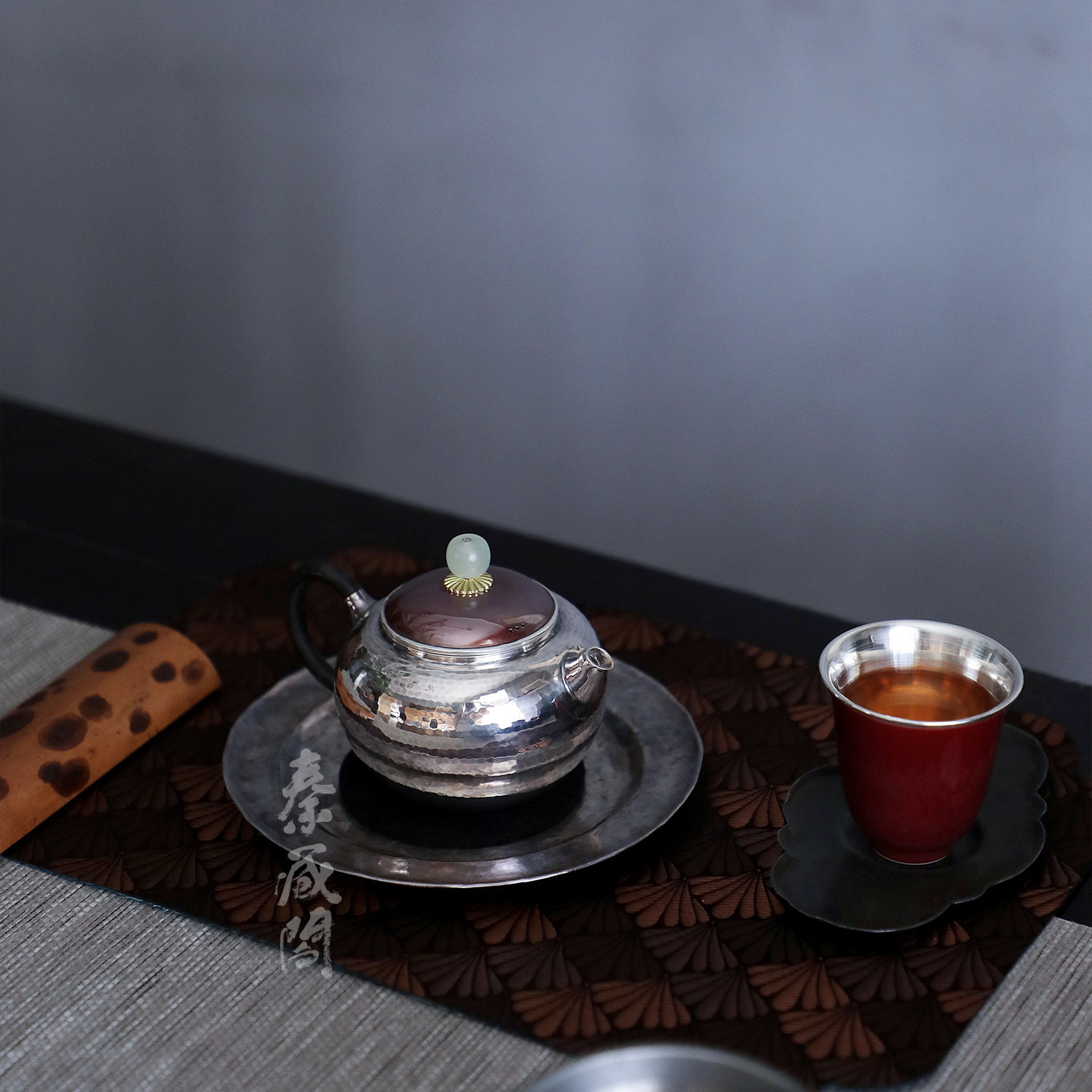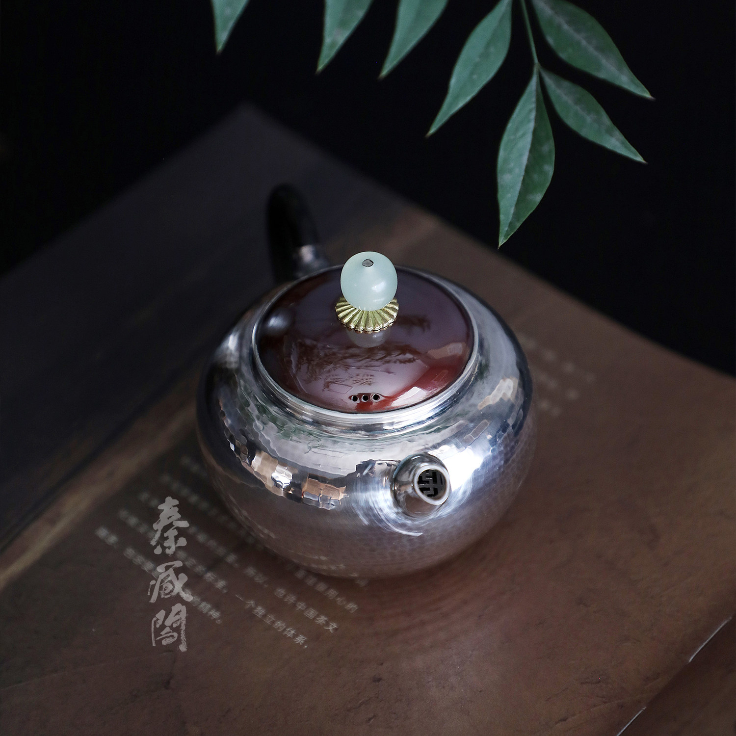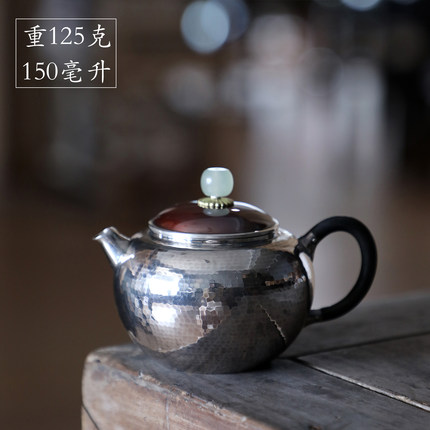 纯银时代镶铜盖做旧纯银泡茶壶 云南纯手工足银999泡茶壶150ml