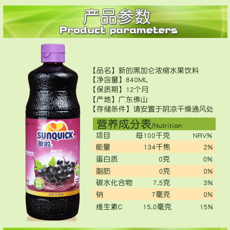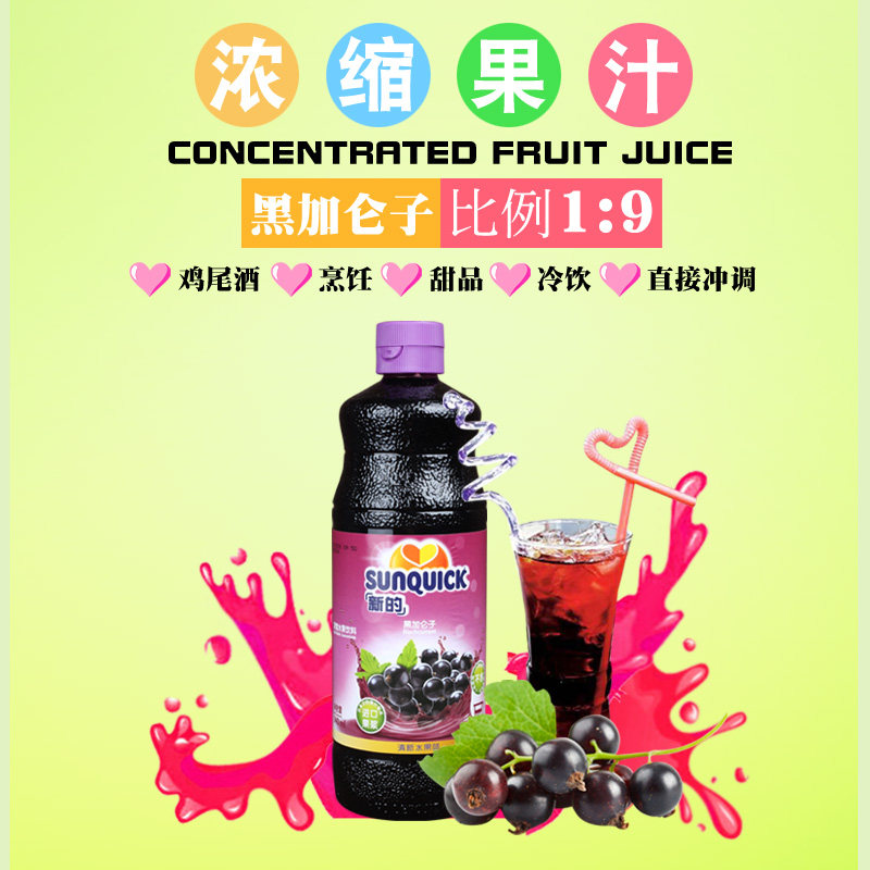 sunquick新的浓缩果汁 黑加仑葡萄黑提提子果汁冲饮西餐厅鸡尾酒