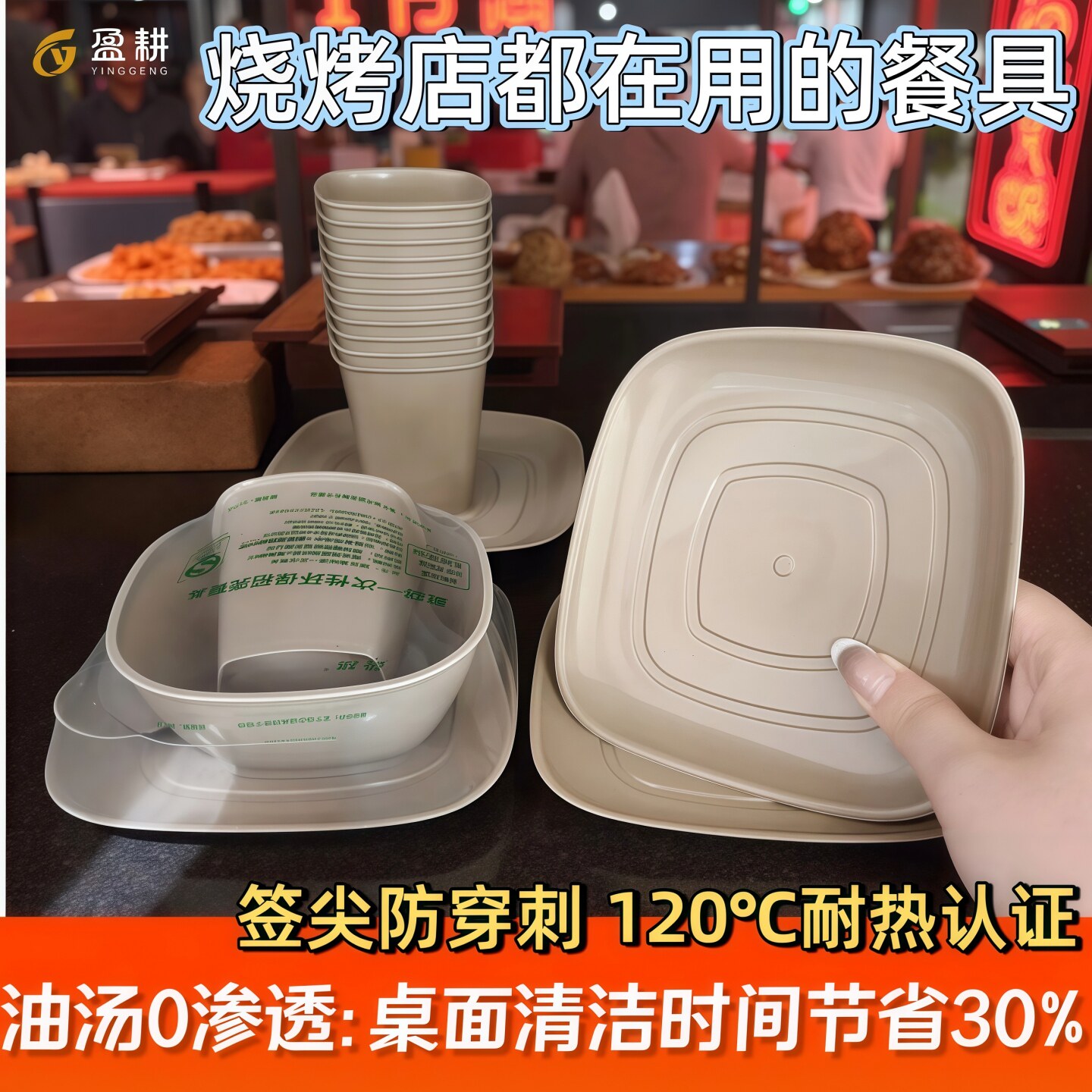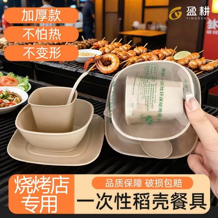 盈耕稻谷壳环保餐具套装便携式一次性碗杯碟勺烧烤店专用饭店酒席
