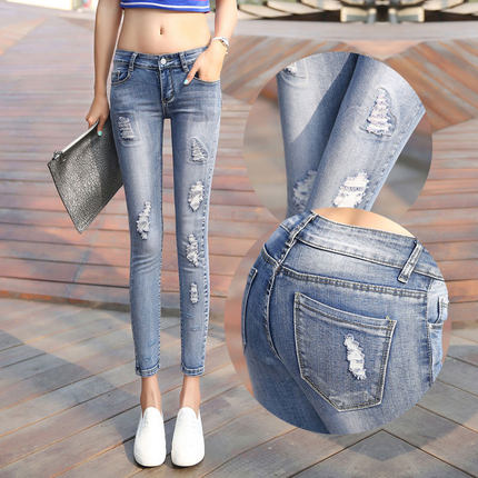 春9分铅笔裤破洞牛仔裤韩版小脚