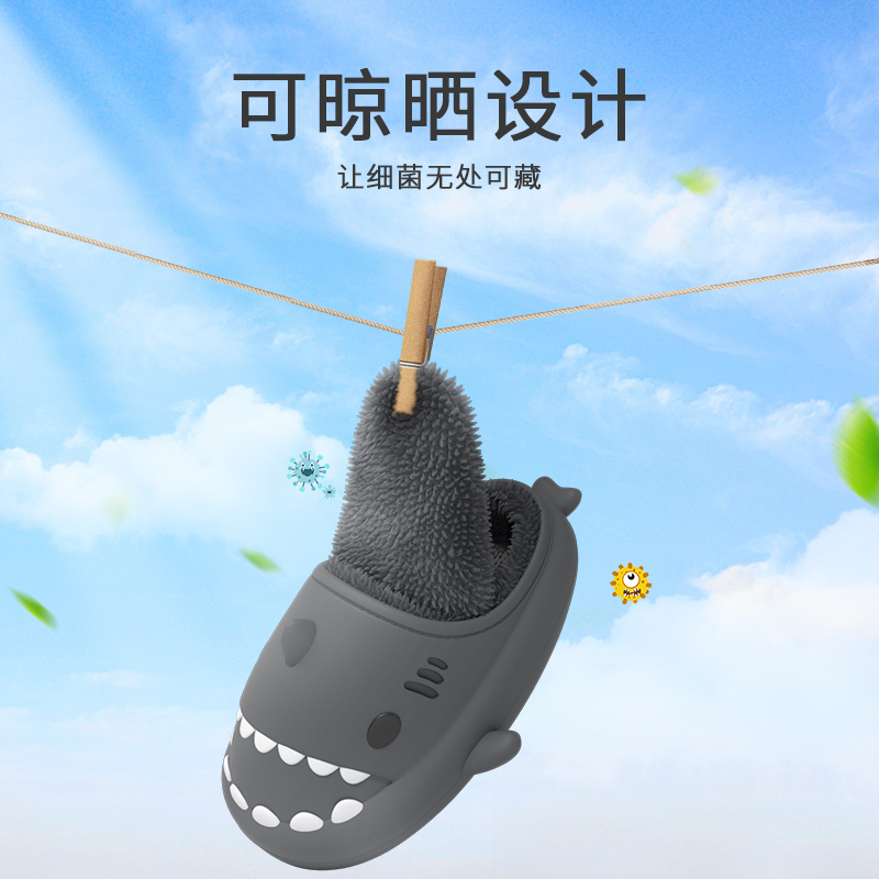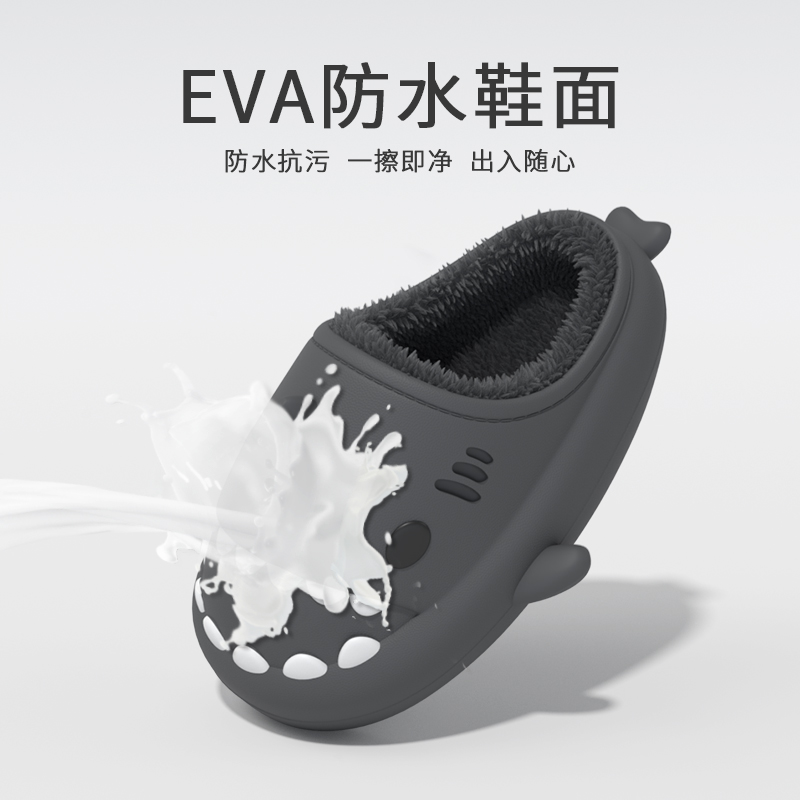 防水鲨鱼棉拖鞋男士冬季2025新款