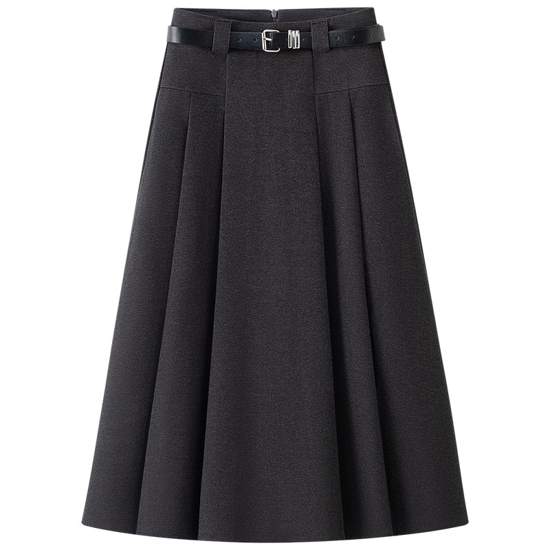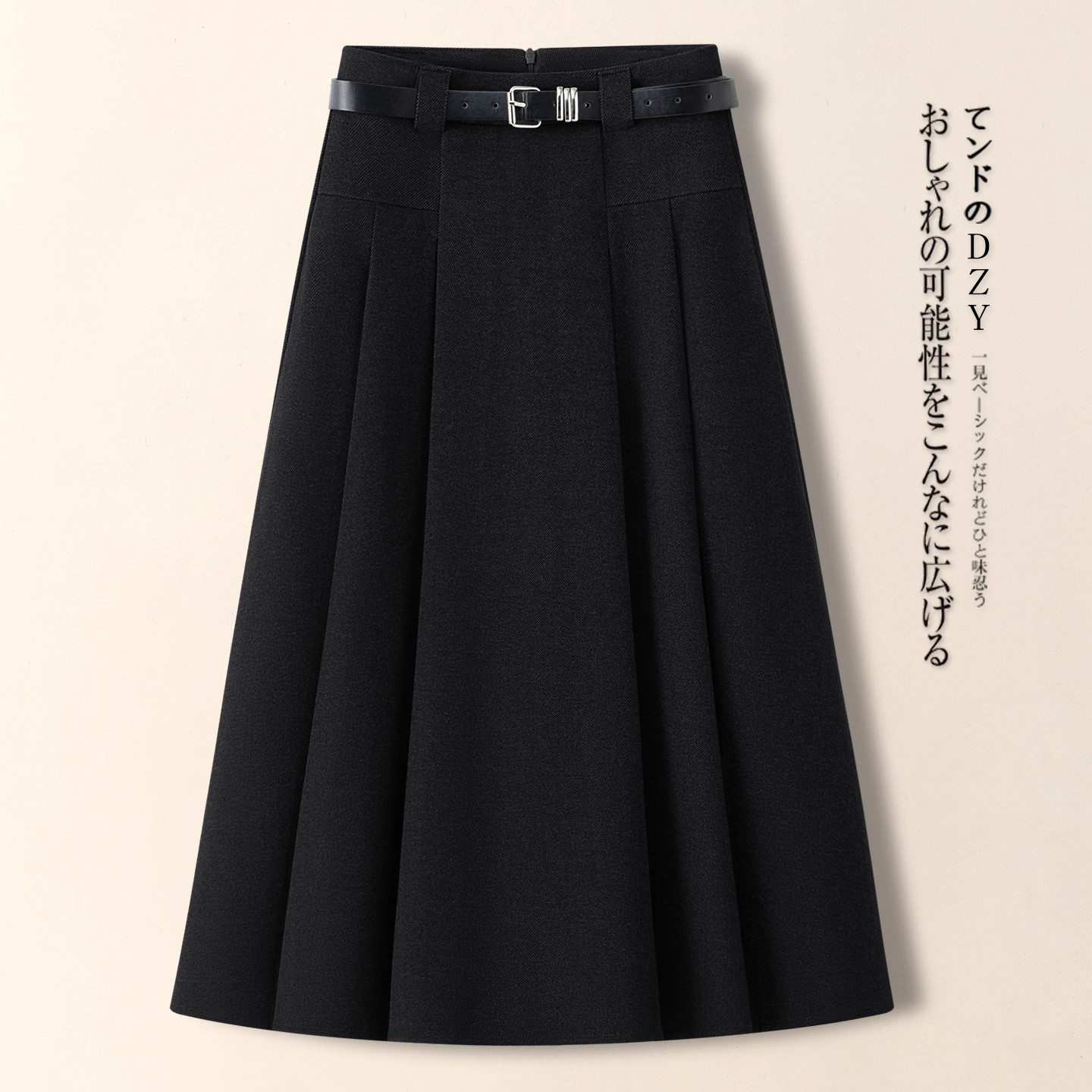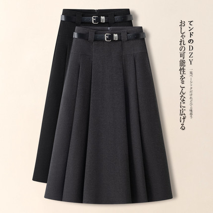 黑色毛呢半身裙女秋冬2025新款高腰百搭设计感显瘦中长a字百褶裙
