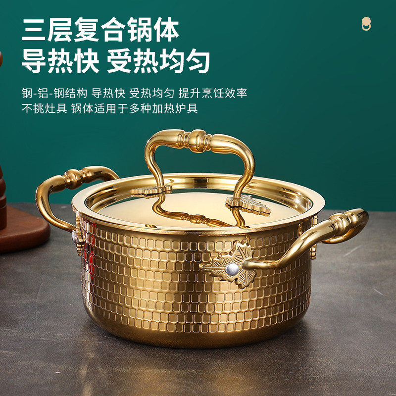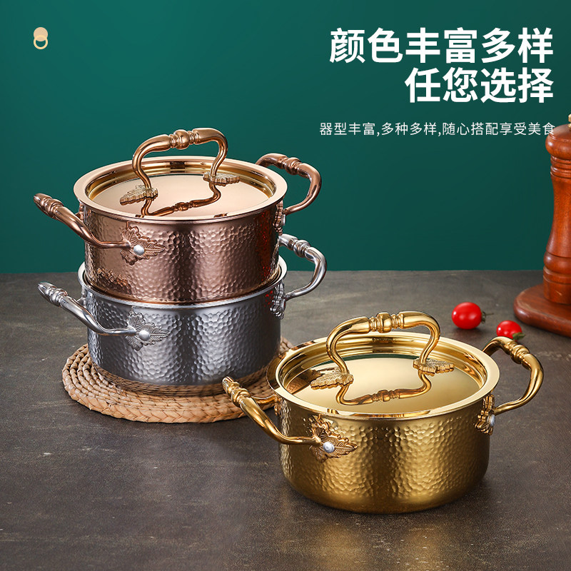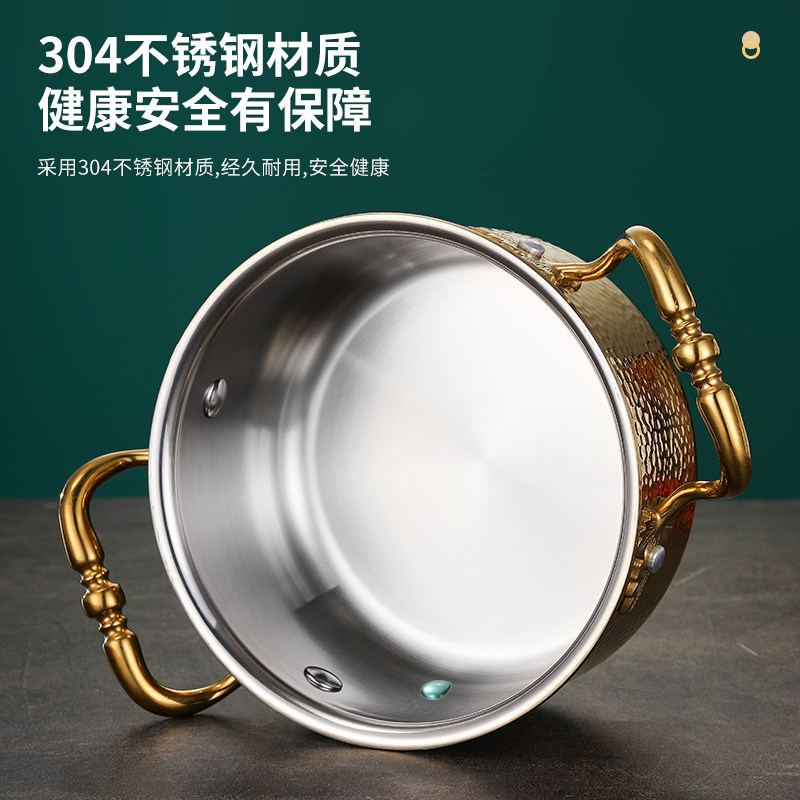 304不锈钢家用加厚双耳单人小火锅餐厅商用小火锅电磁炉燃气通用