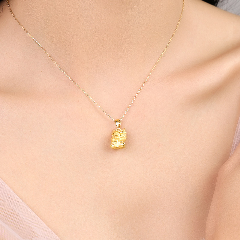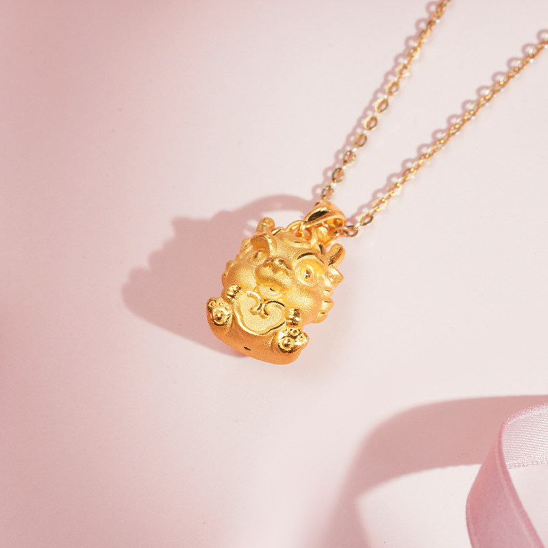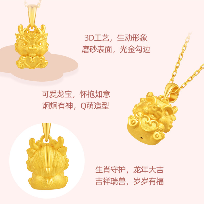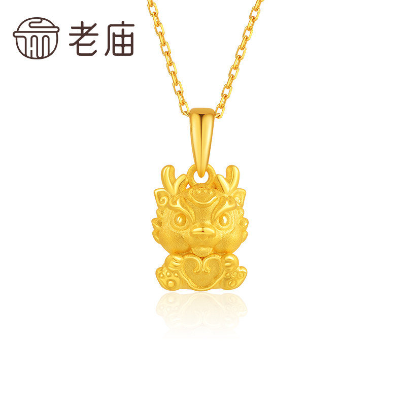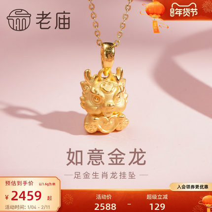 老庙黄金足金如意金龙挂坠3D炯炯有神生肖龙本命年守护送礼物官方