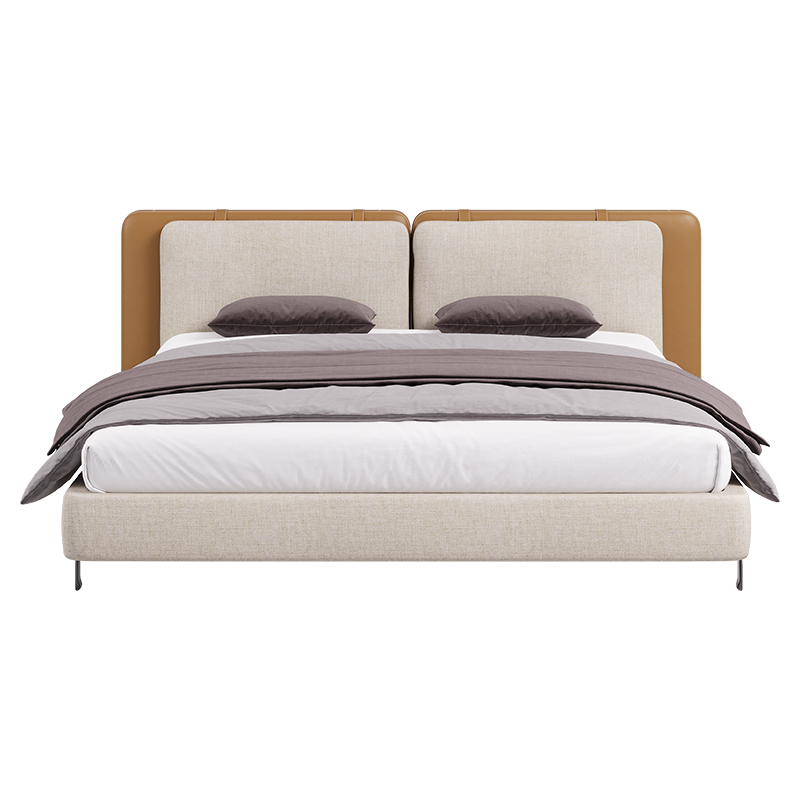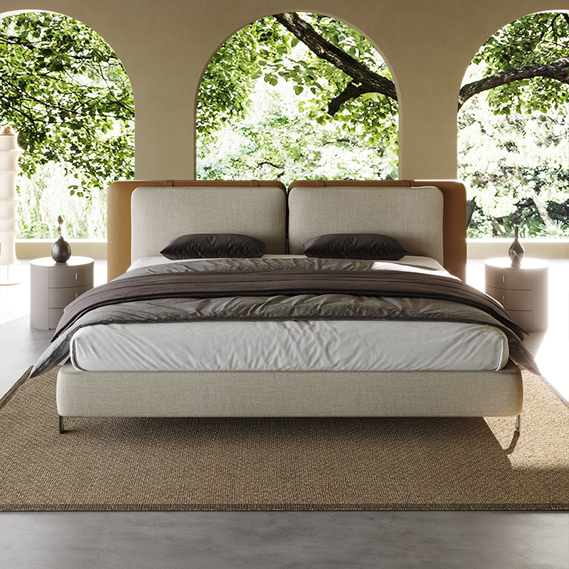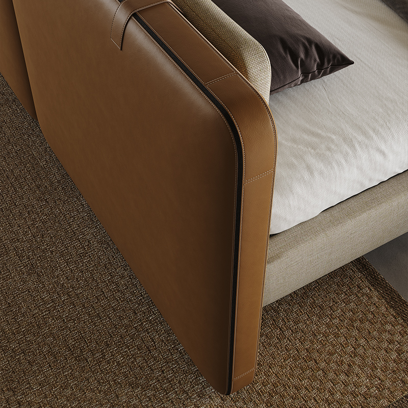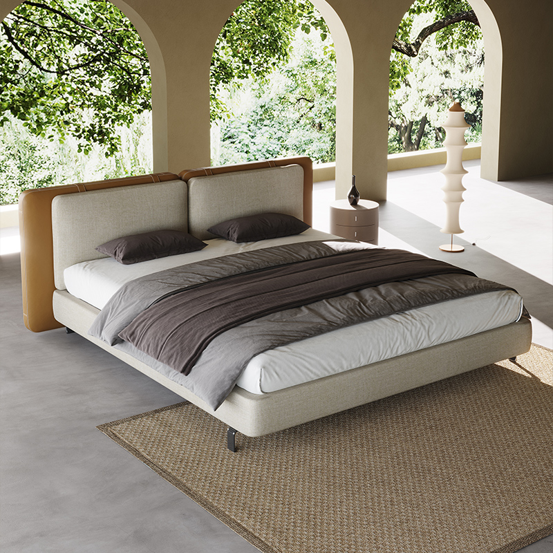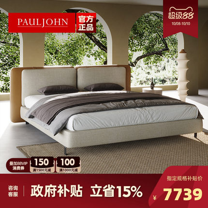 保罗约翰意式现代简约大平层家用布艺床双人卧室马鞍皮轻奢真皮床