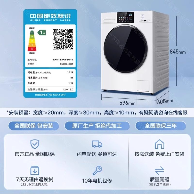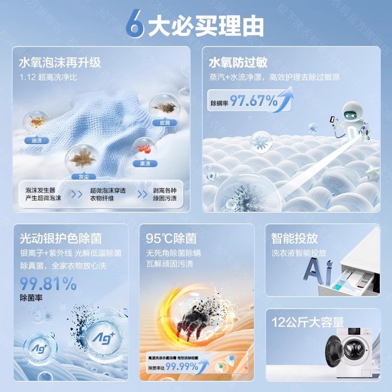 松下白月光4.0Ultra Max滚筒12kg洗衣机全自动家用除菌智投N572T