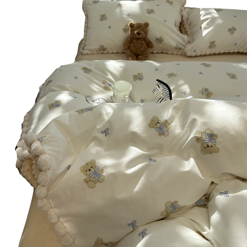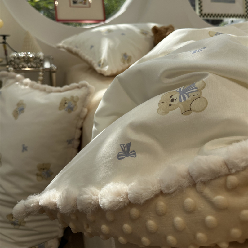 少女心领结小熊棉加豆豆绒四件套