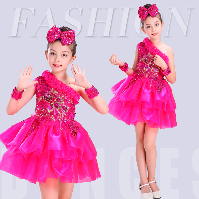 六一新款儿童蓬蓬裙亮片演出服公主纱裙爵士舞拉丁舞舞蹈表演服