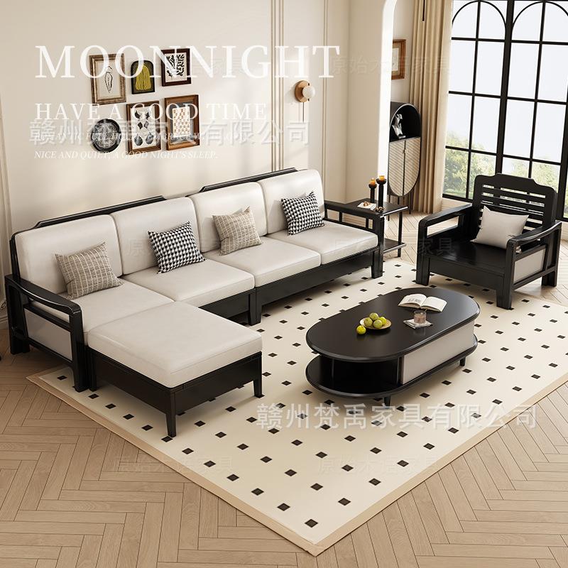 北欧复古胡桃木实木沙发客厅组合冬夏两用黑色诧寂风法式藤编家具