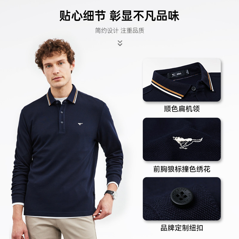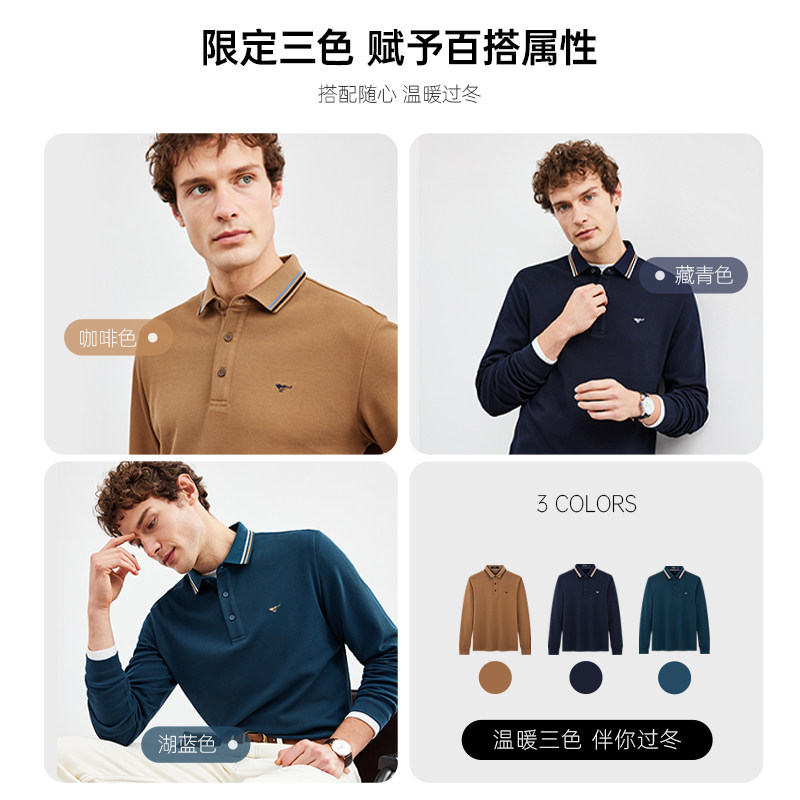 七匹狼暖焱绒保暖长袖T恤POLO衫