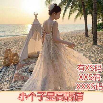 女装春装150cm显高矮个子XXXS加小码吊带连衣裙高级感度假风长裙