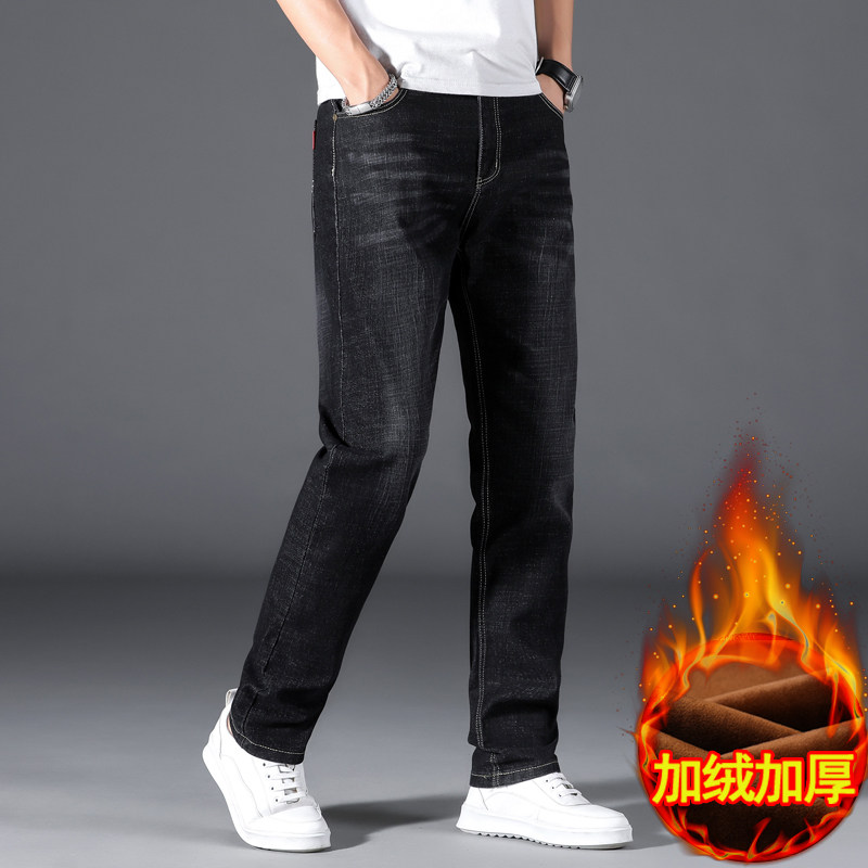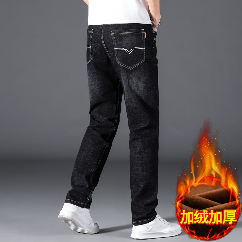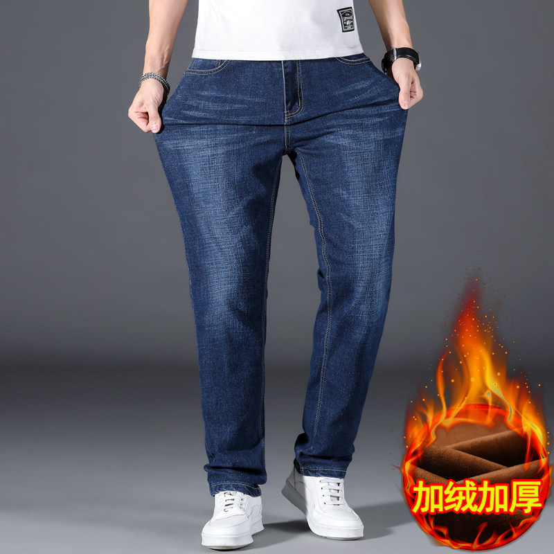 秋冬款牛仔裤男加绒加厚宽松直筒加肥加大码中年水洗男裤2025新款