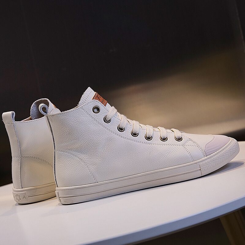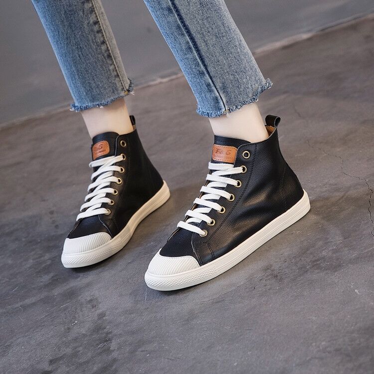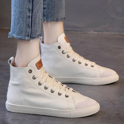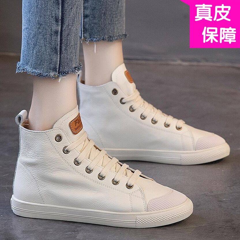 真皮高帮板鞋女2025年新款潮韩版百搭女单鞋平底运动休闲鞋小白鞋
