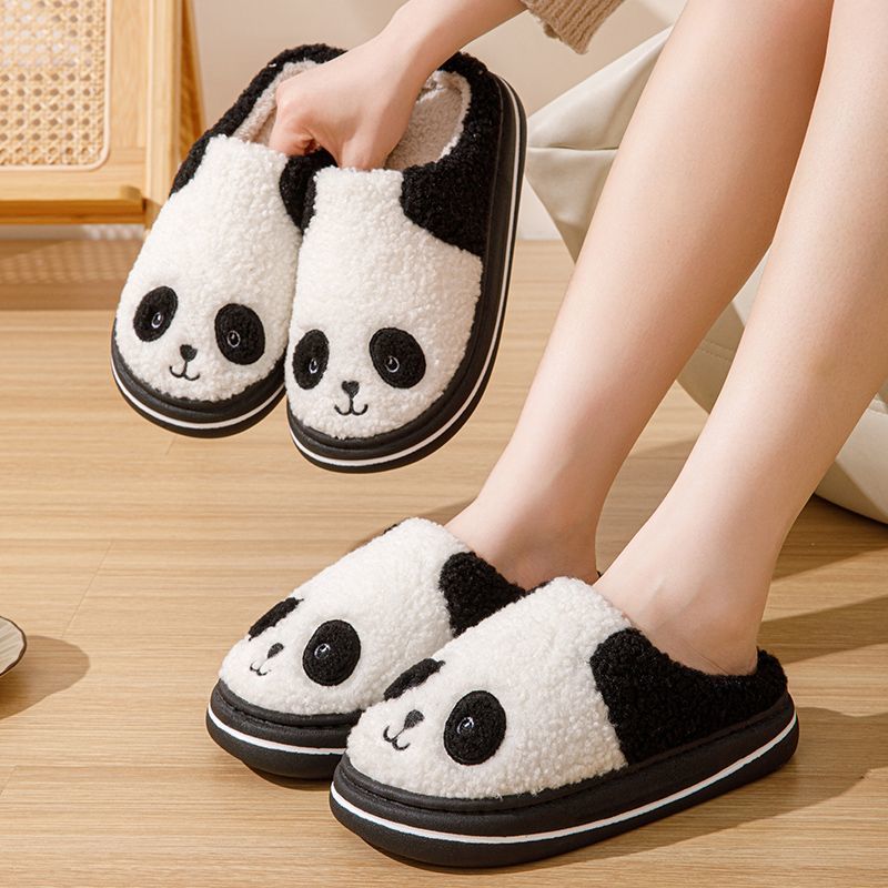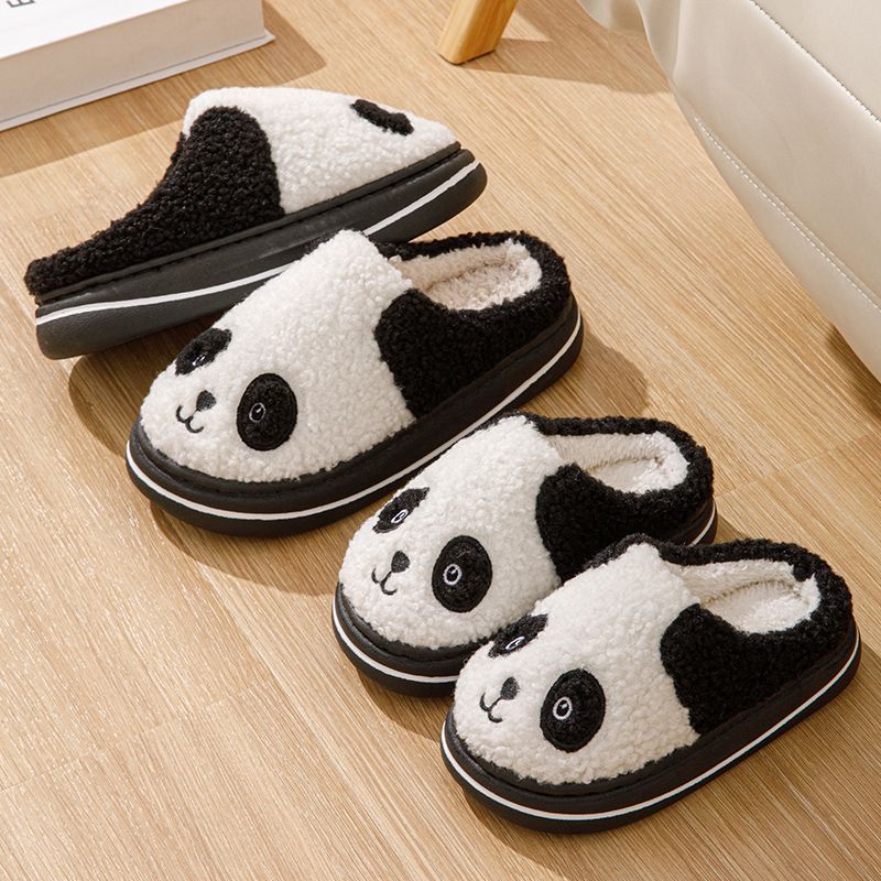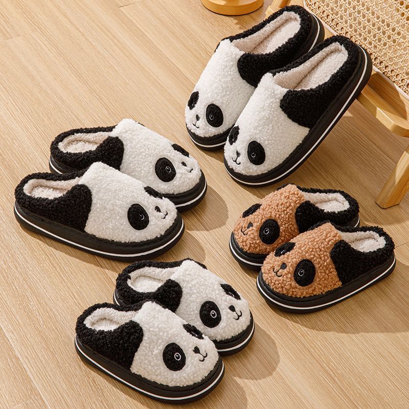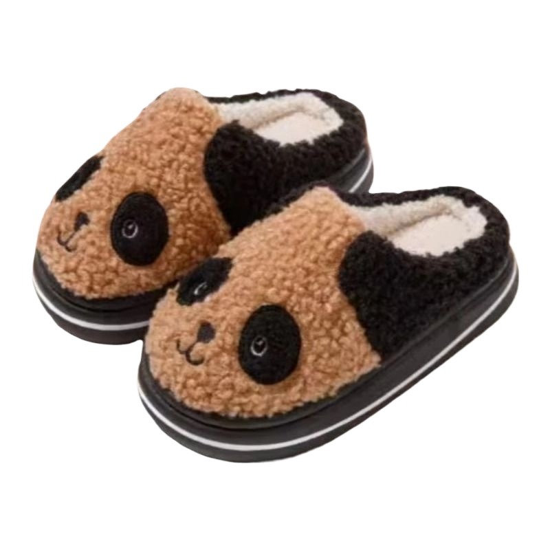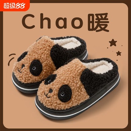 儿童棉拖鞋男童冬2025新款女宝宝家居鞋熊猫毛绒亲子棉鞋公主卡通