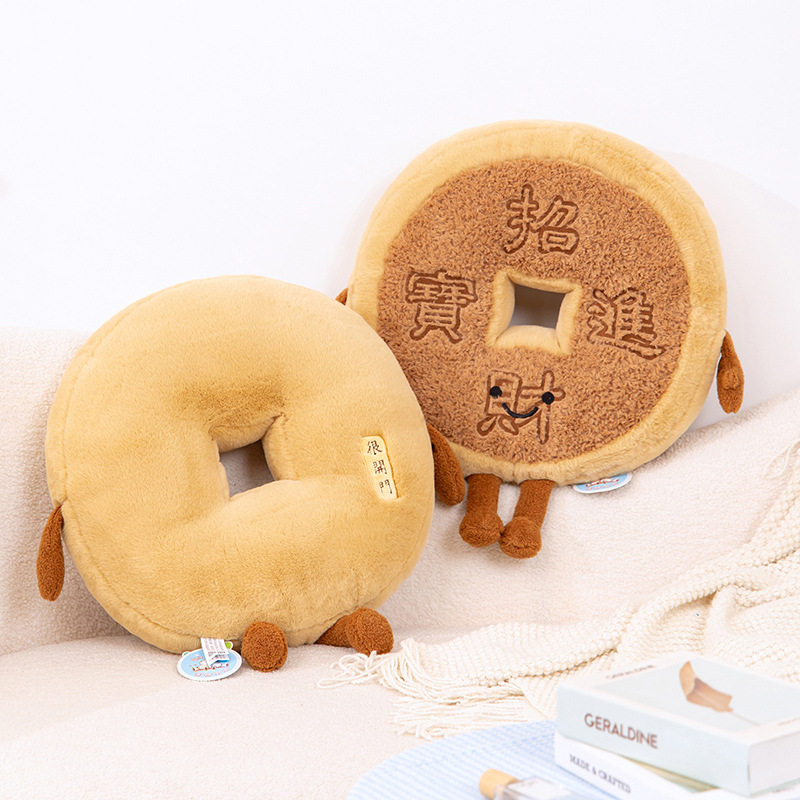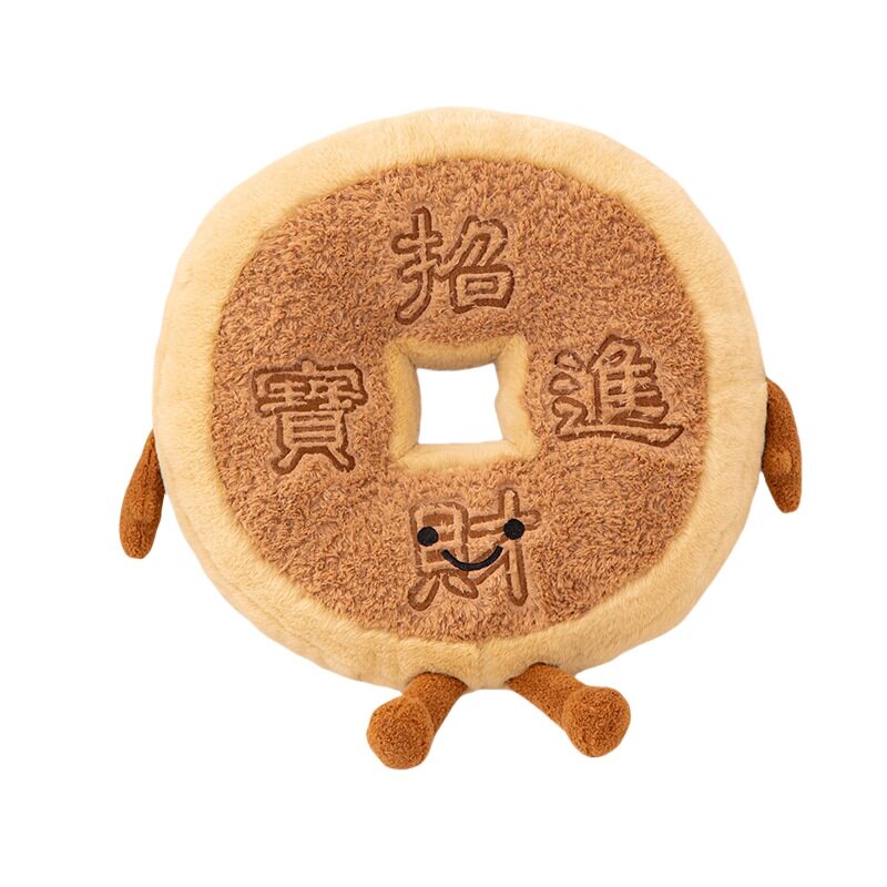 价可爱铜钱抱枕毛绒玩具公仔超软靠垫有钱沙发抱枕