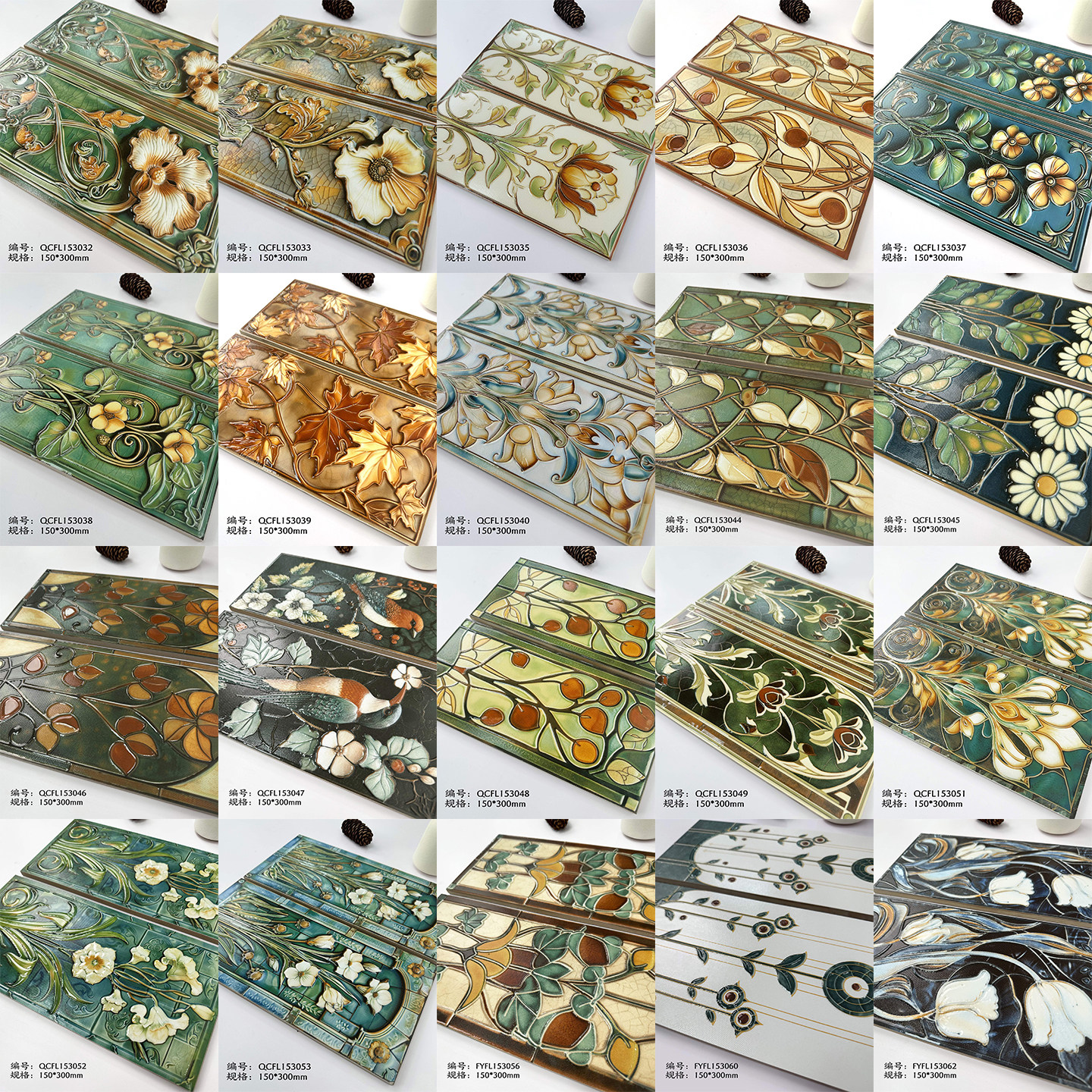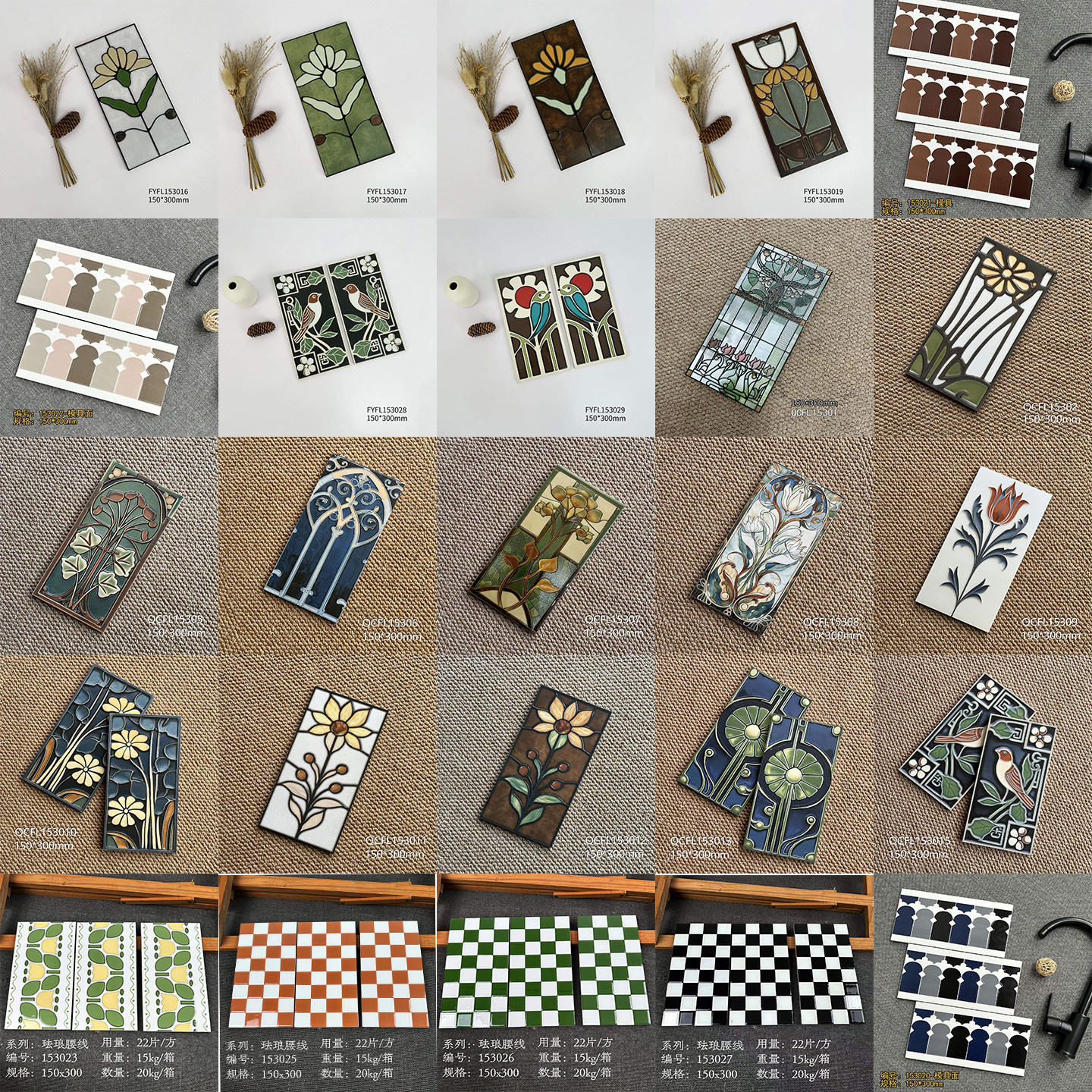 小红书全瓷彩色娘惹花砖平面长条手工砖厨房卫生间小瓷砖背景墙