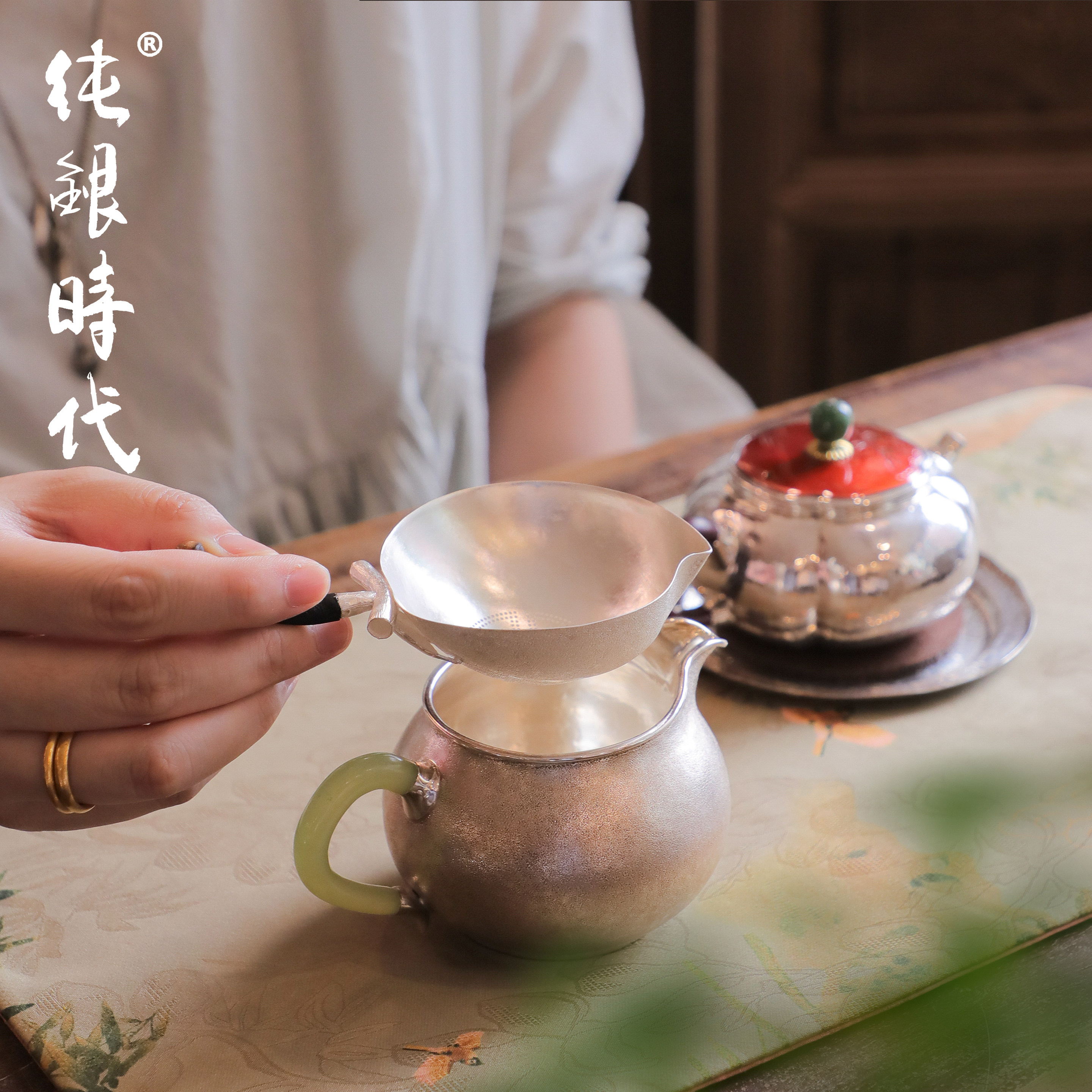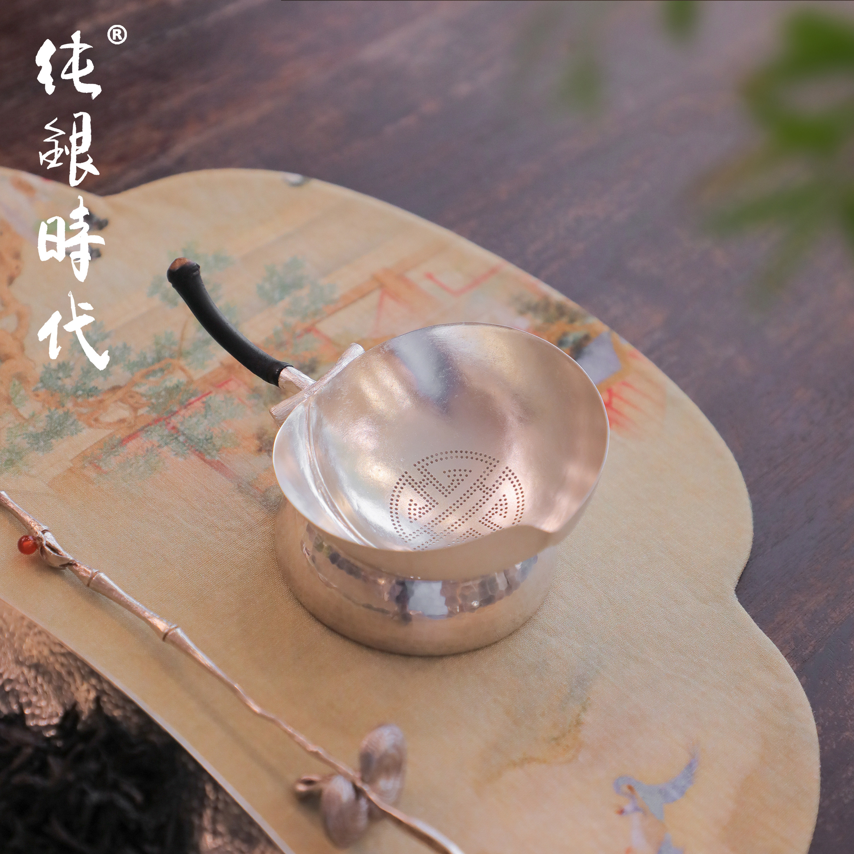 纯银时代 寿桃茶漏茶滤纯银999茶具茶叶过滤泡茶神器过滤器茶滤网