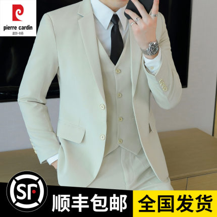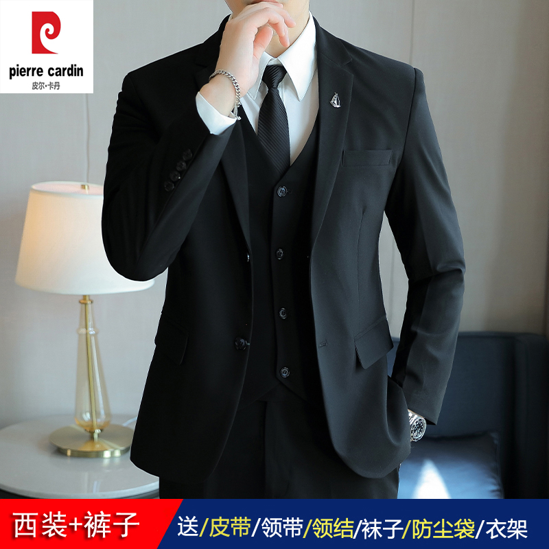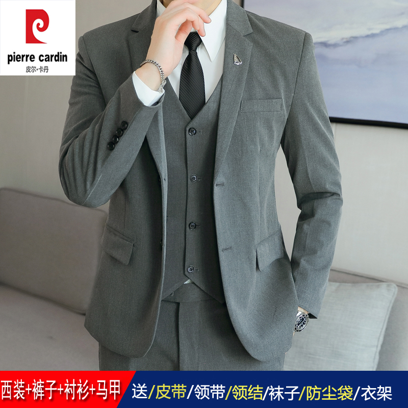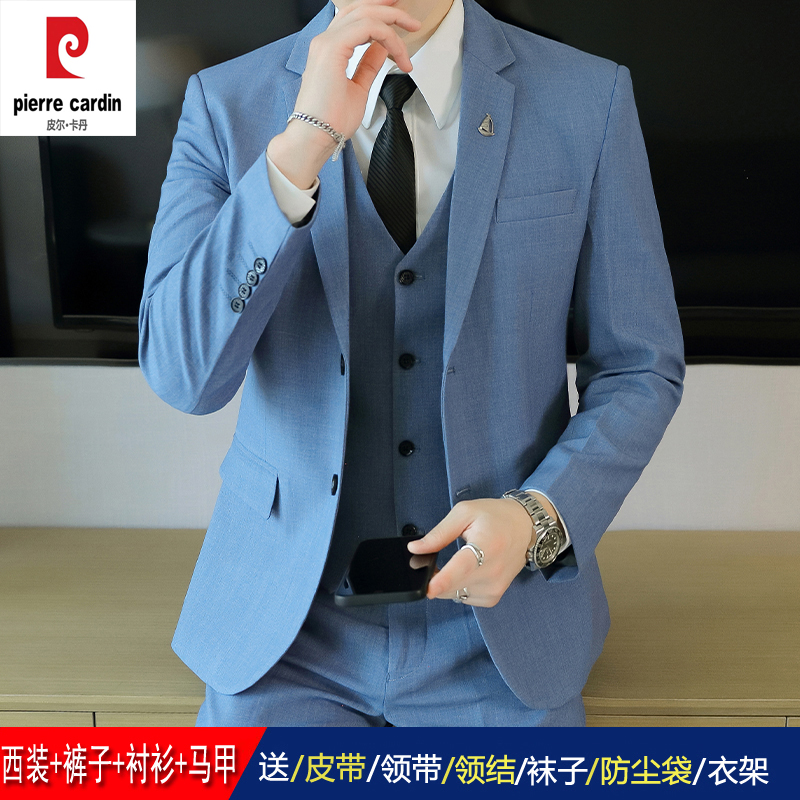 皮尔卡丹男士休闲西服套装男韩版修身小西装商务正装新郎结婚礼服