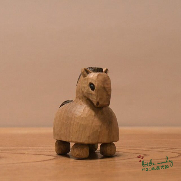 日本代购 小马 2026年生肖 匠人手工 治愈可爱 木雕 公仔 摆件