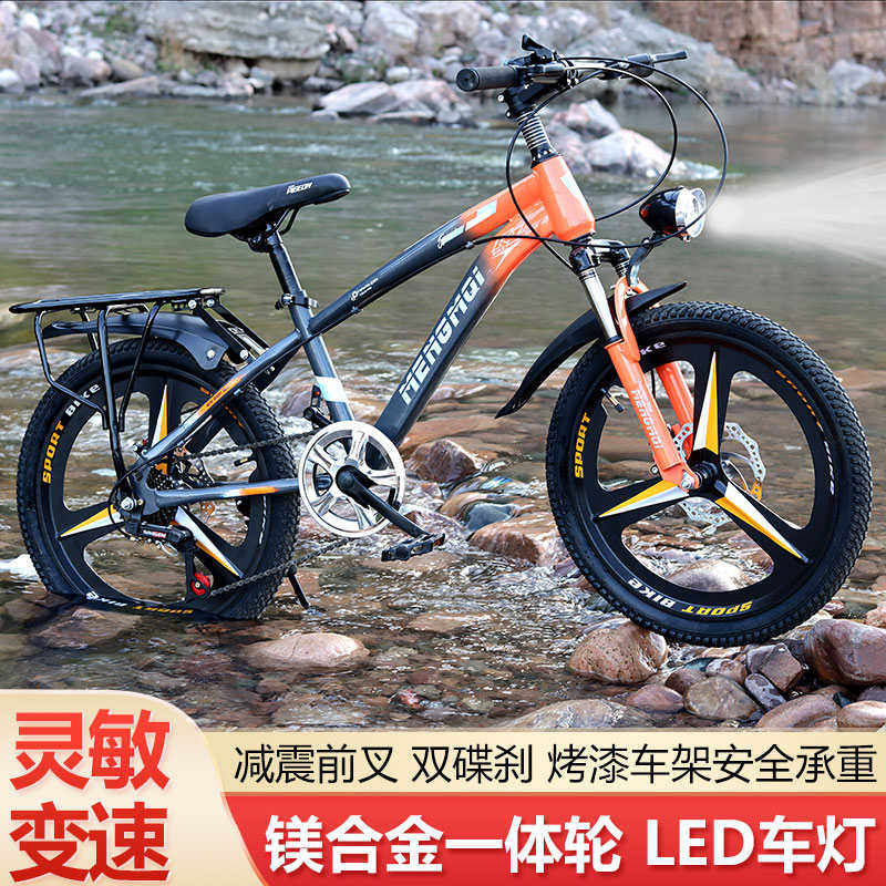 儿童山地车男孩自行车女孩镁合金一体轮变速减震碟刹中小学生单车