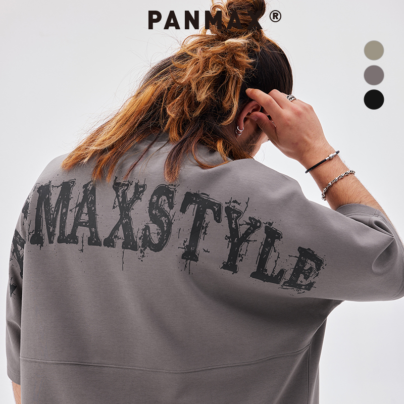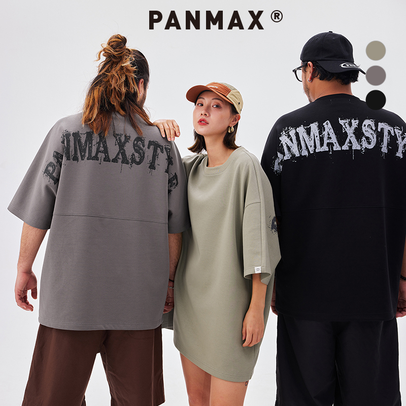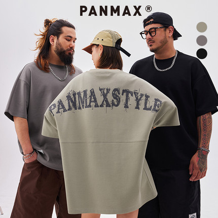 PANMAX潮牌大码男装美式纯色基础款后背大字母印花情侣款短袖T恤