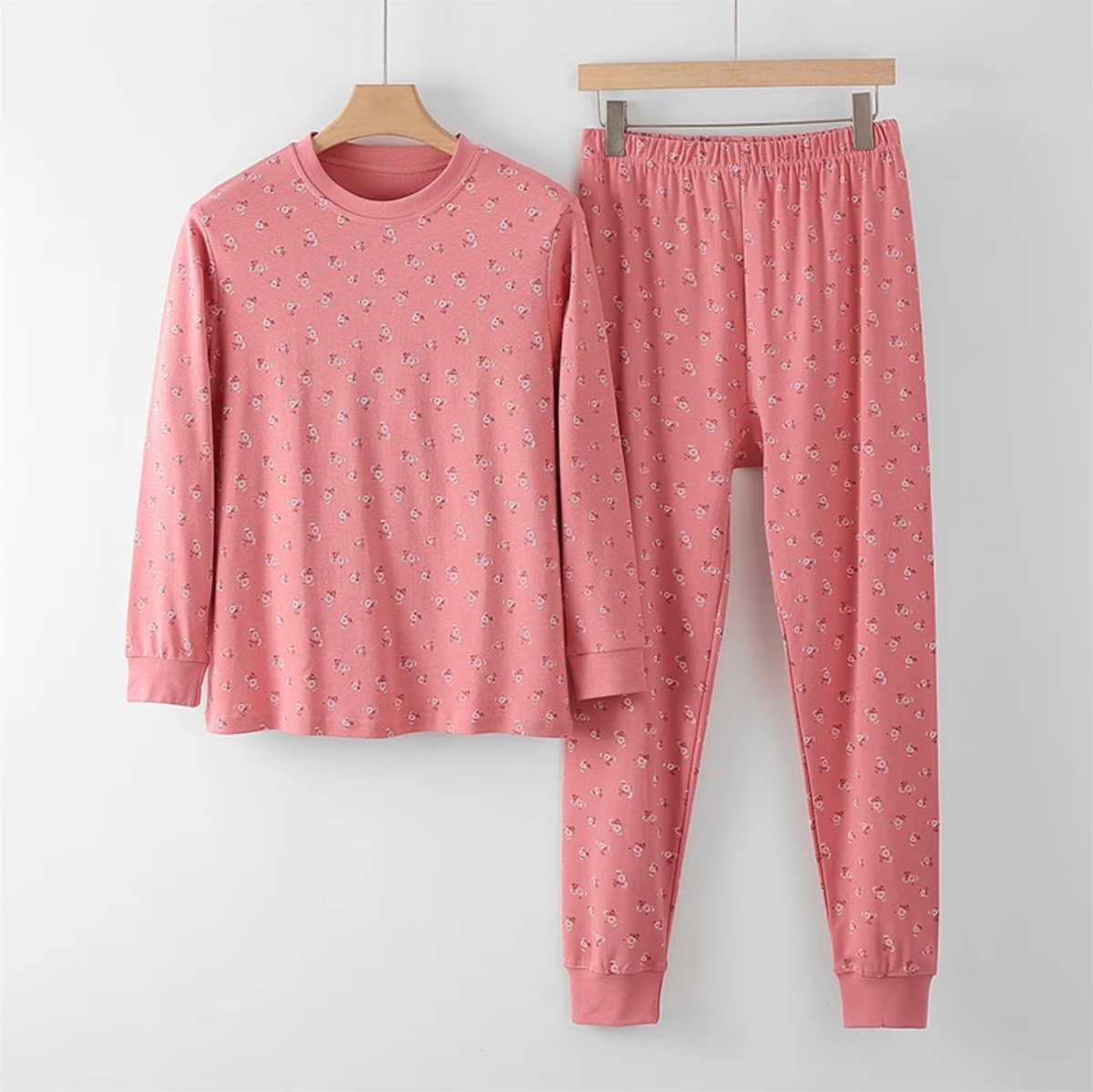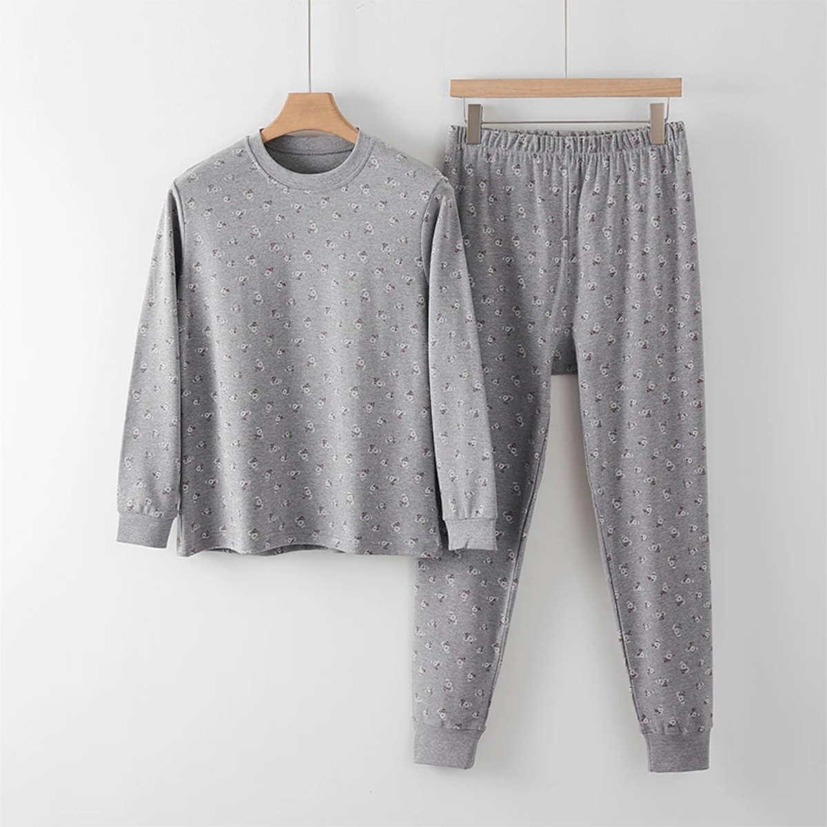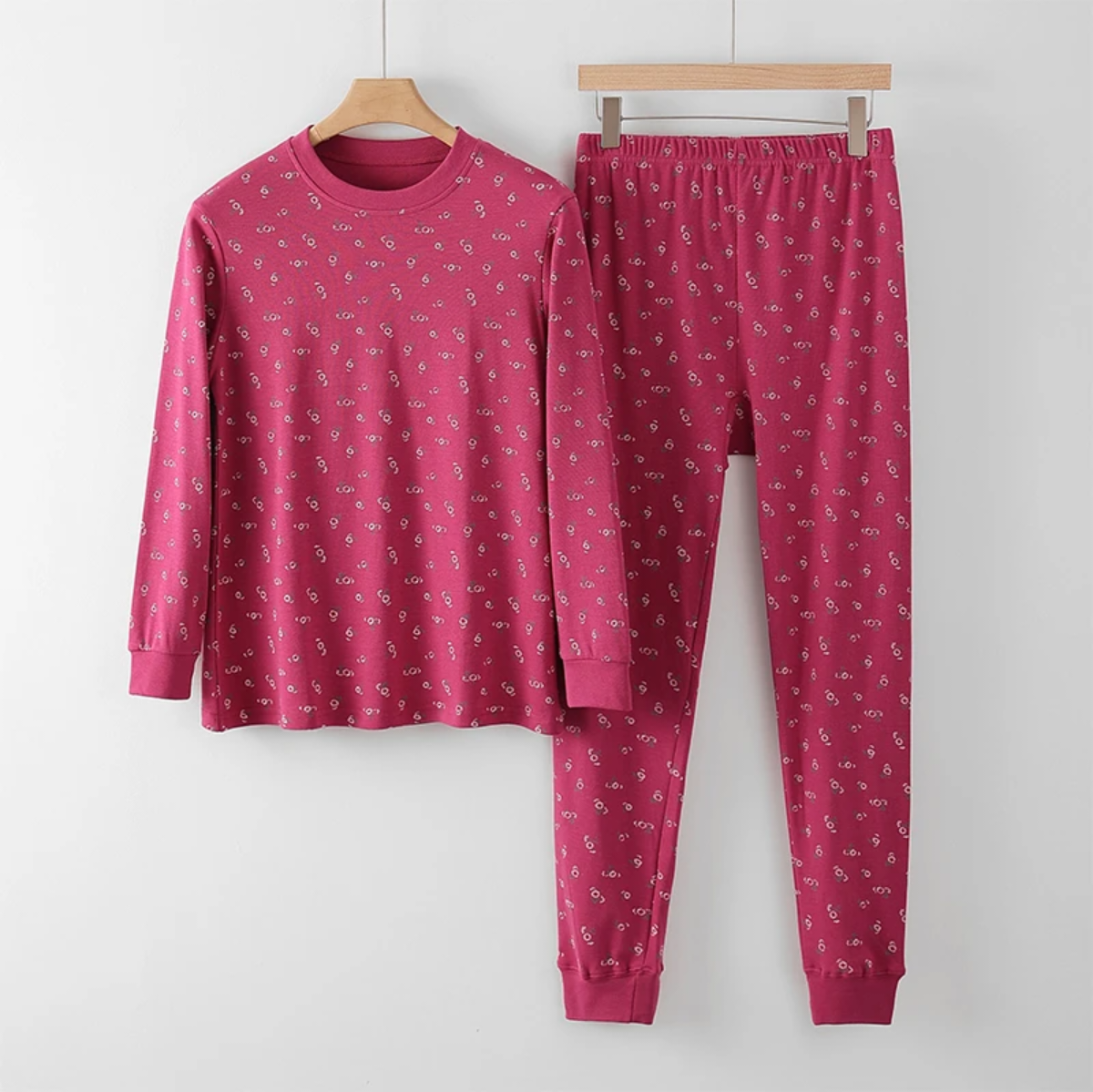 纯棉毛衫套装中老年套头圆领宽松大码秋衣秋裤秋季女士