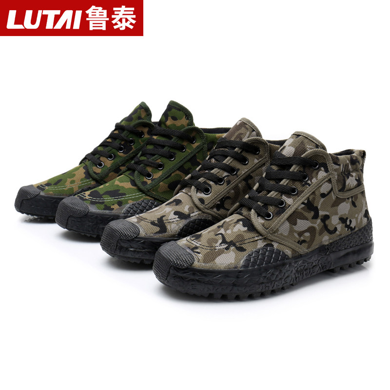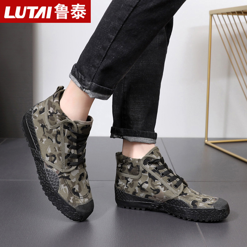 鲁泰高帮鞋男帆布耐磨秋季军训鞋劳动工作胶鞋户外迷彩解放鞋男
