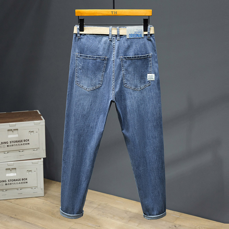 春夏薄牛仔裤大码新弹力九分裤加肥加大宽松直筒牛仔裤男肥佬潮